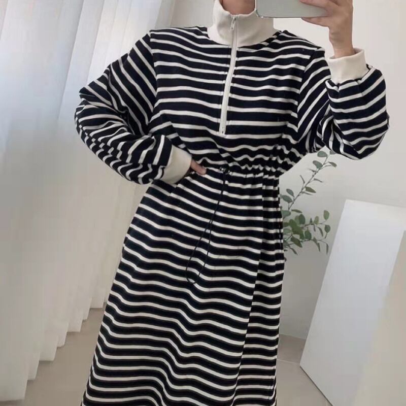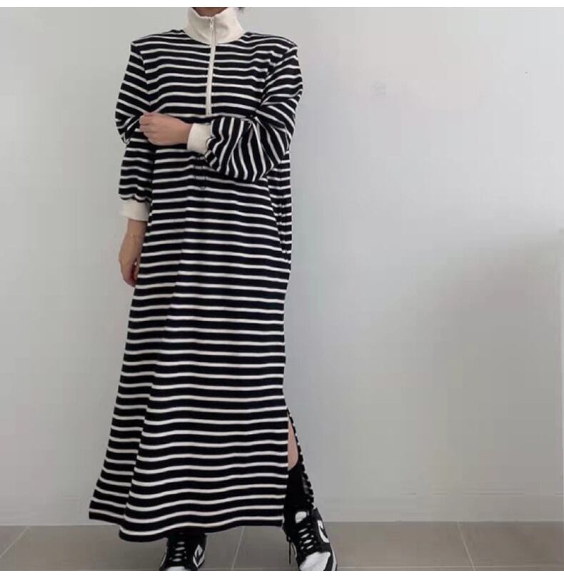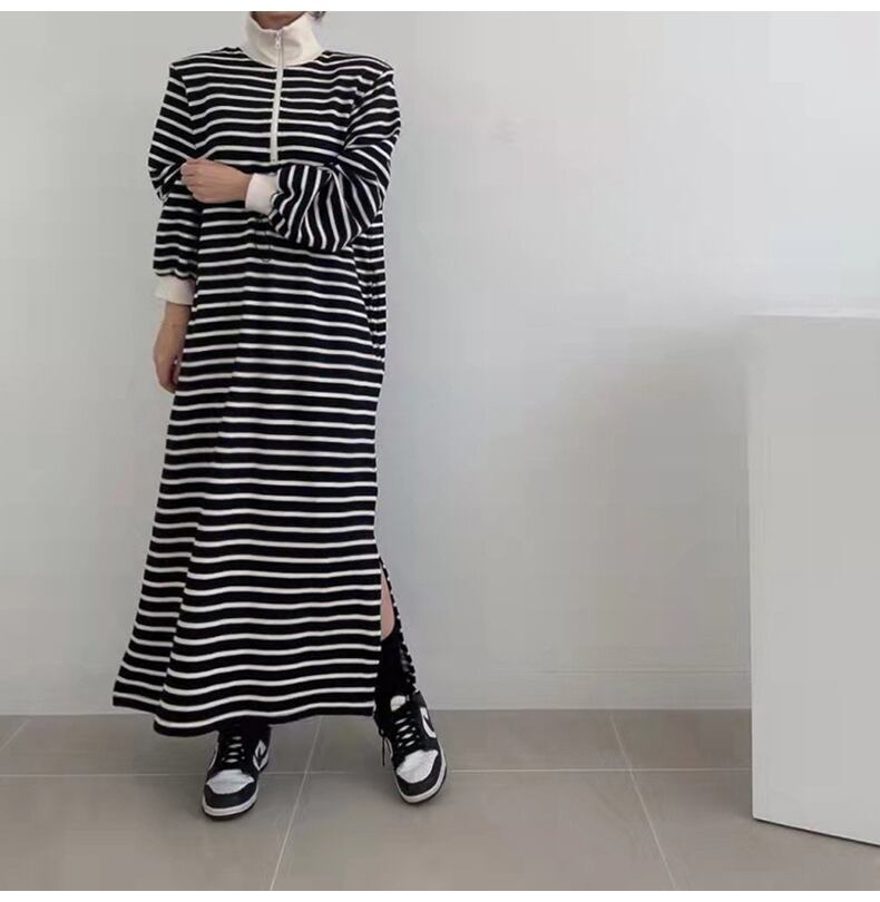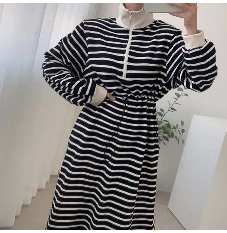 ニットワンピースレディースウィンターNEWロングスカート レースウェストストライプ 冬物 ウエスト GroundMODE2970880243
