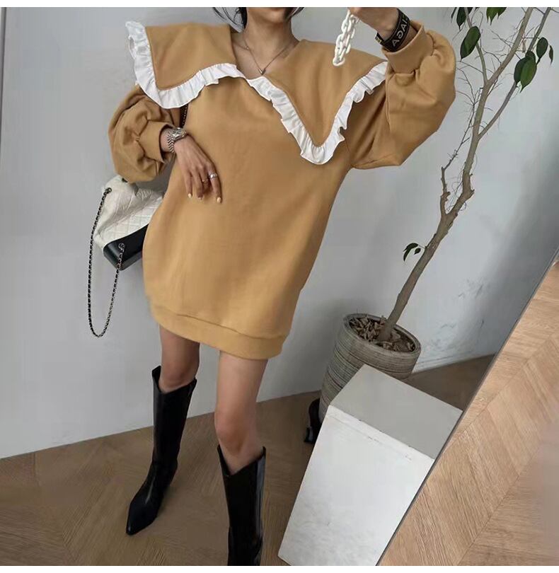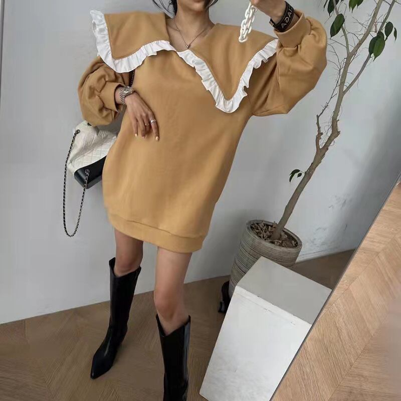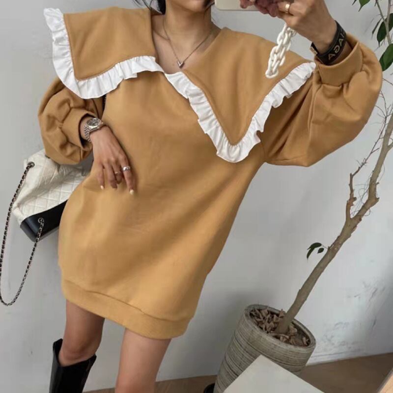 韓国ファッションNEWワンピース秋物ウィンターカラーセーター ロング オータム 冬物 長袖 ミドル丈 GroundMODE91566126753