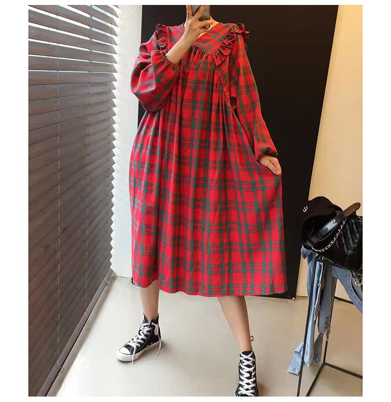 韓国ファッションスタイルワンピースウィンター格子柄Aラインレディース ロング 冬物 長袖 GroundMODE376782433