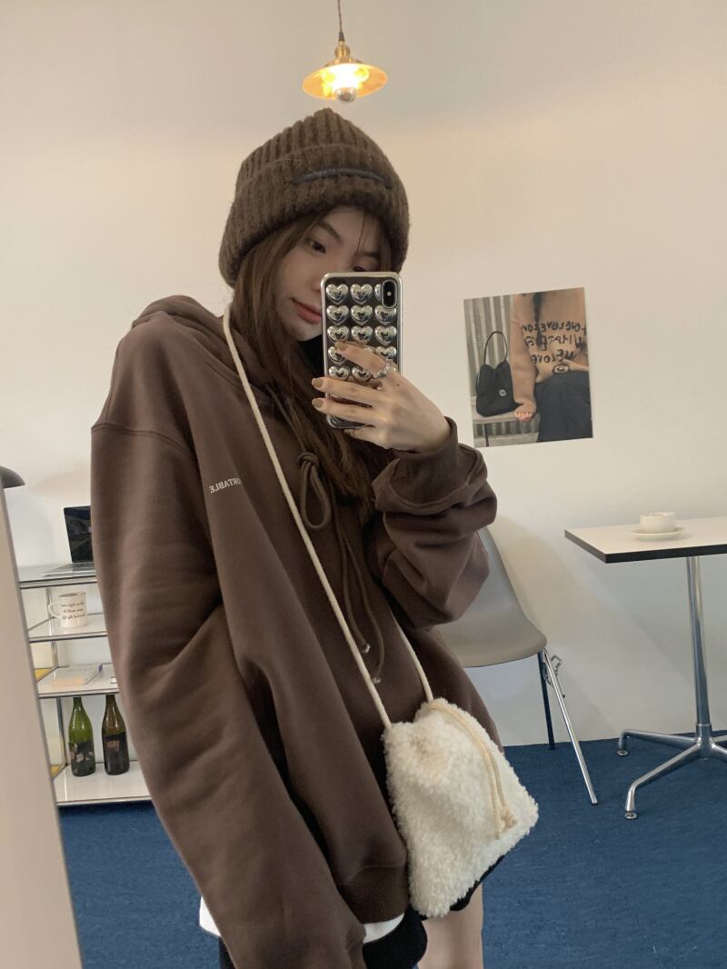 ブルースウェット レディースオーバーサイズ秋物ウィンターフードジャケット 韓国ファッションルーズ オータム 冬物 ミドル丈 GroundMODE451977965915 | pleglad Ground