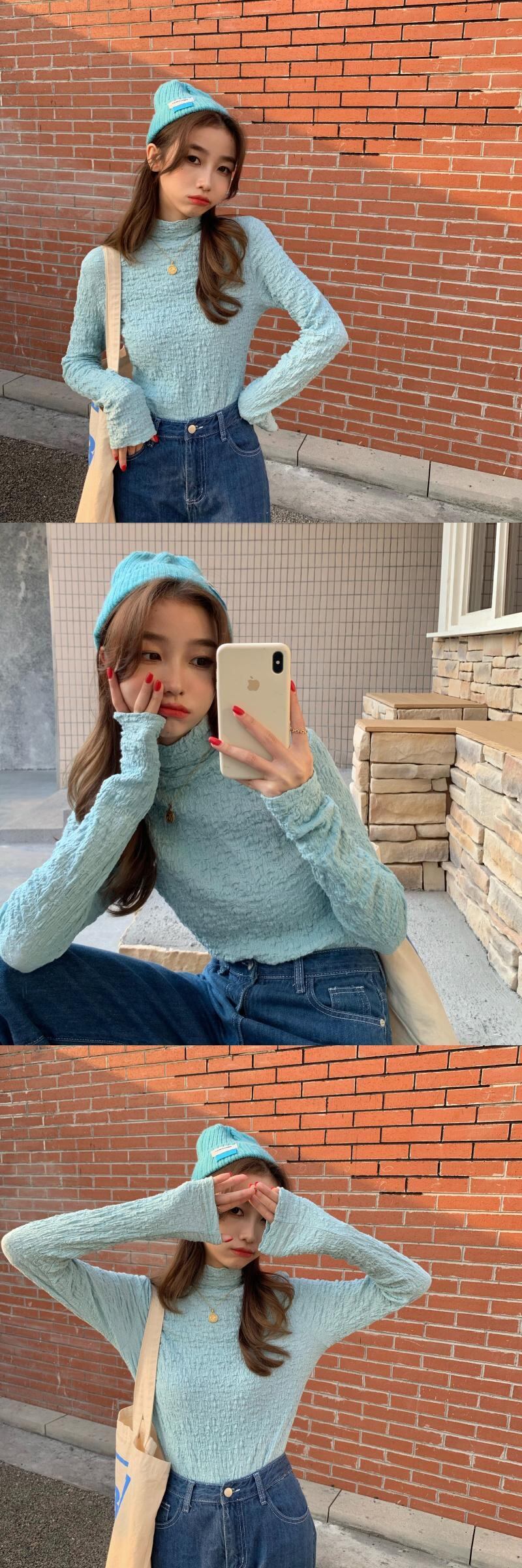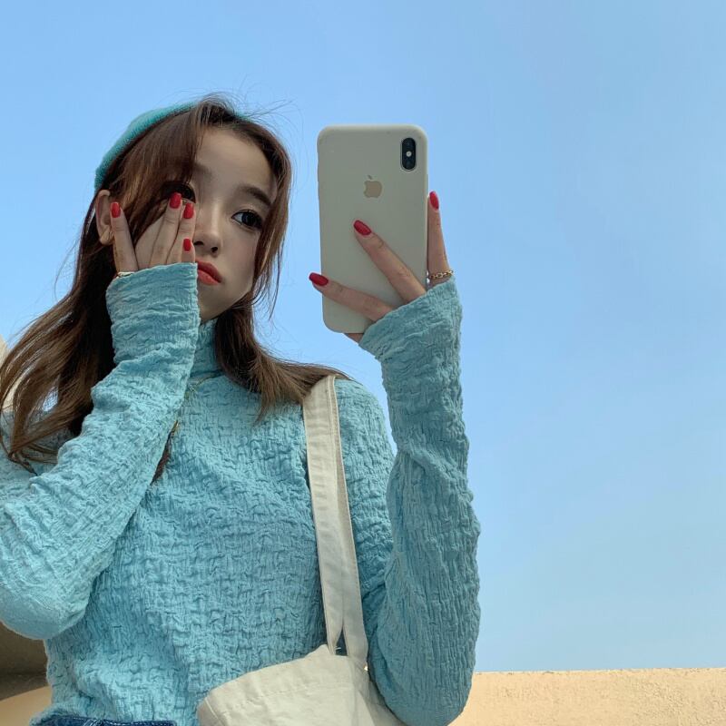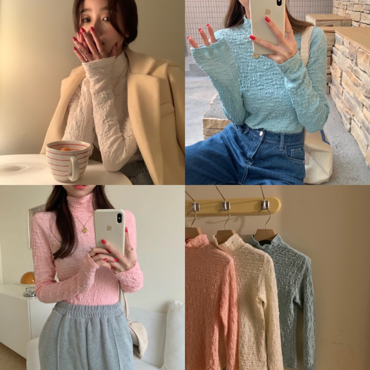 カラープリーツゆったりシャツ レディース秋物ウィンター韓国ファッションスリム薄手Tシャツトップス ロング レッド オータム 冬物 スタイル 長袖 GroundMODE465374096096 | pleglad Ground