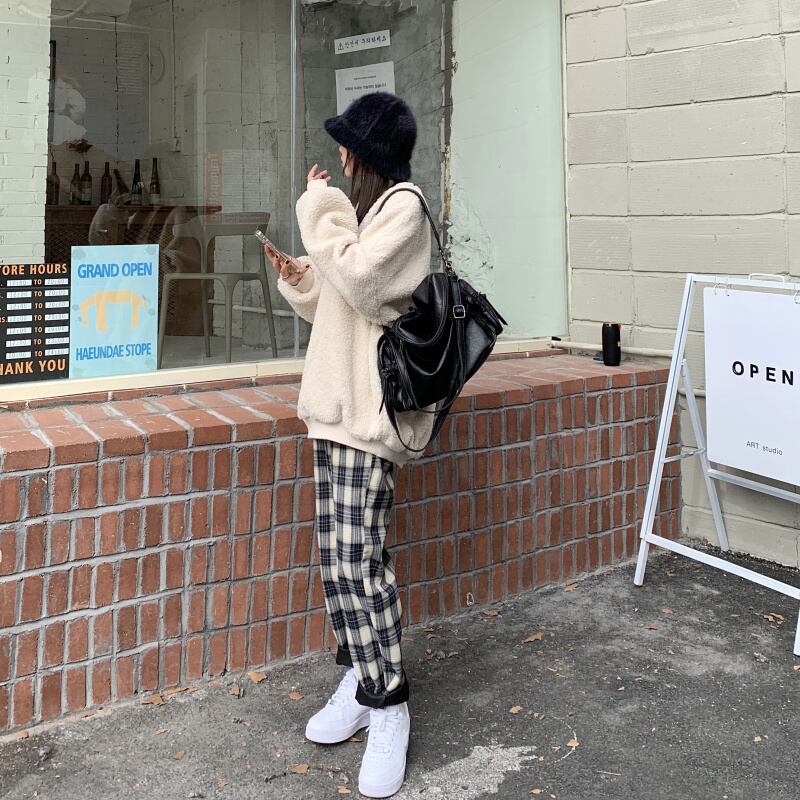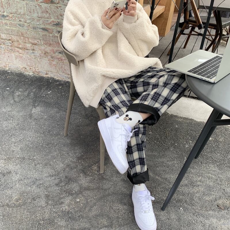 スタンダード格子柄カジュアルパンツ レディース秋物ウィンタースタイル韓国ファッション薄手ルーズウェスト レトロ オータム 冬物 ウエスト GroundMODE44745766489 | pleglad Ground