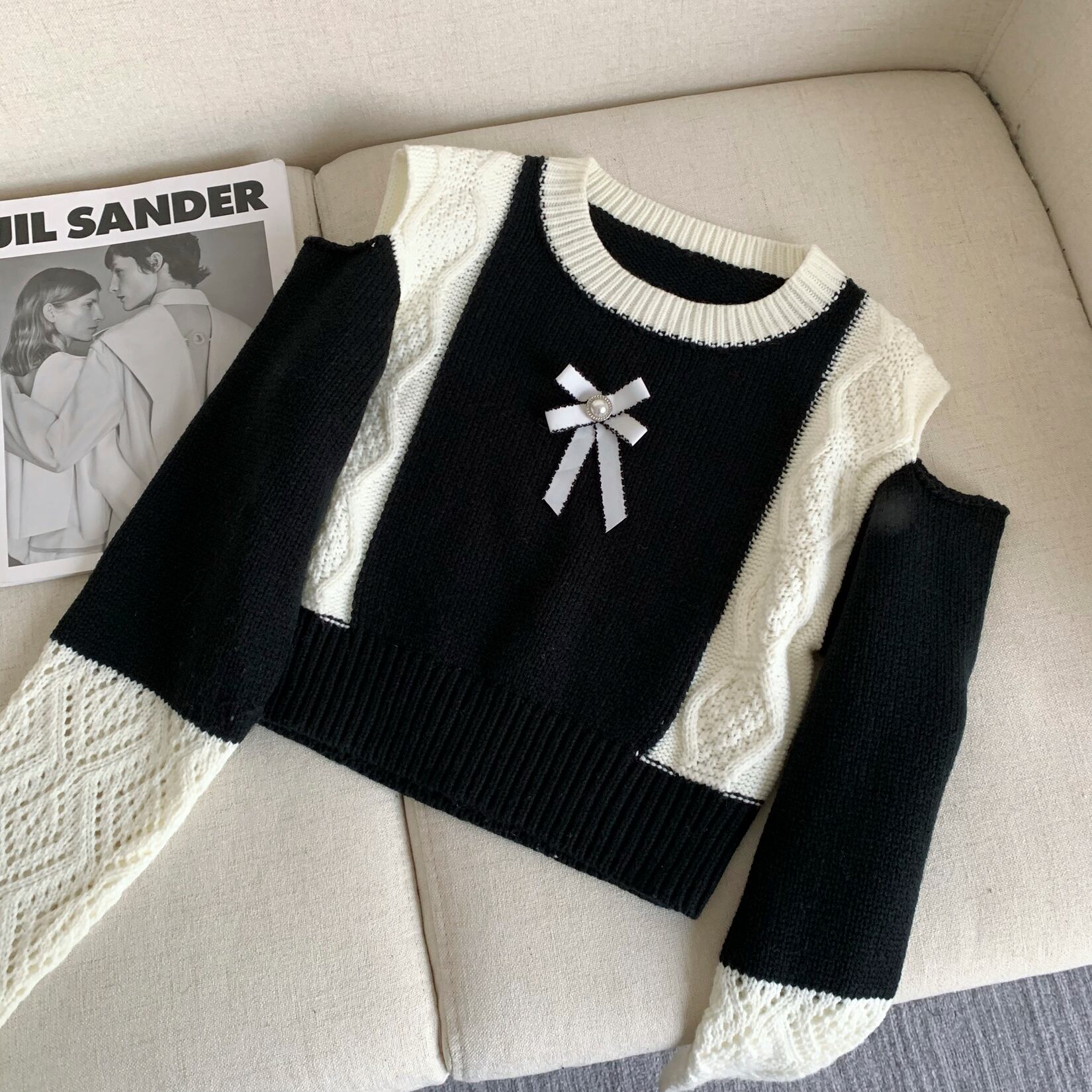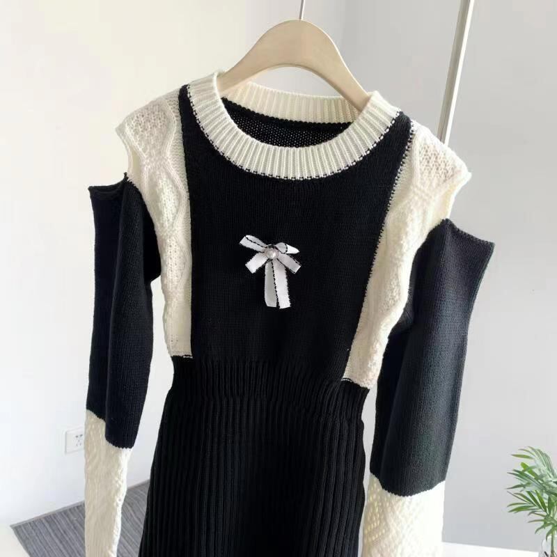 セーター スカート レディーススタンダードニットワンピース秋物ブラックホワイト レトロ オータム ウィンター 冬物 オフショルダー GroundMODE417993515294 | pleglad Ground