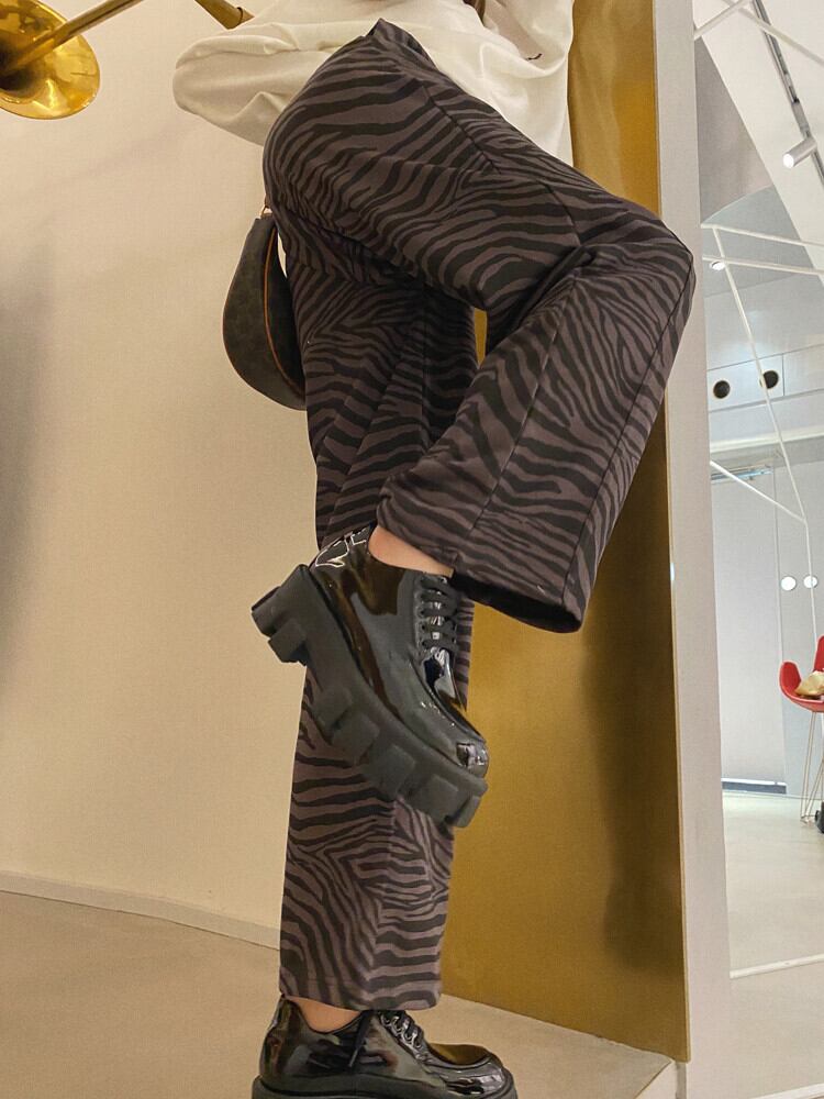 色:ゼブラプリントパンツ,ホワイトトップ,ダークグレートップ