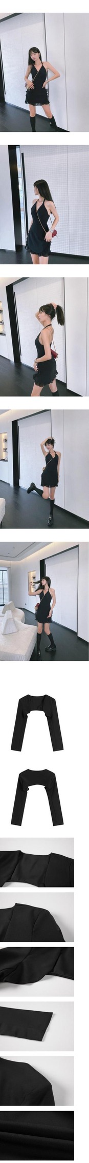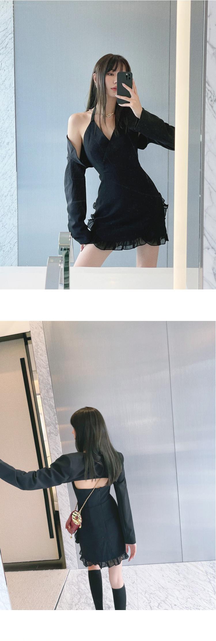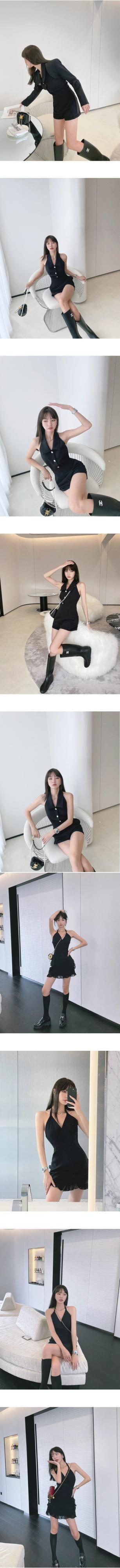 色:ショールスモールスーツジャケット,黒のハンギングネックジャンプスーツ,黒のハンギングネックスーツスカート