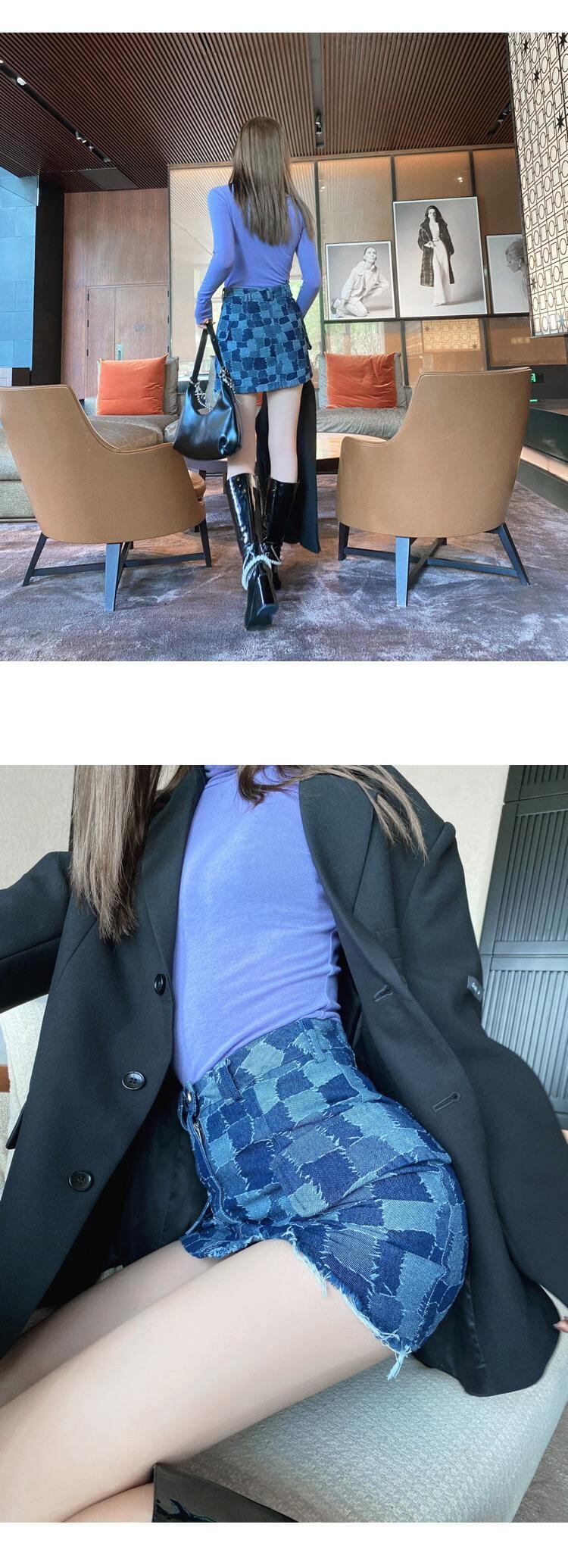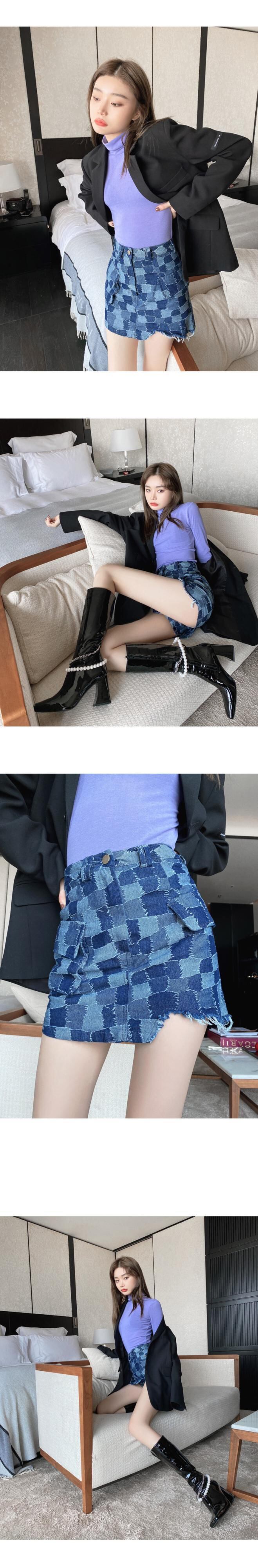 格子柄スカート レディーススプリング秋物スタンダードAラインハイウェストウェストトップス レトロ 春物 オータム パープル ウエスト GroundMODE47616681503 | pleglad Ground