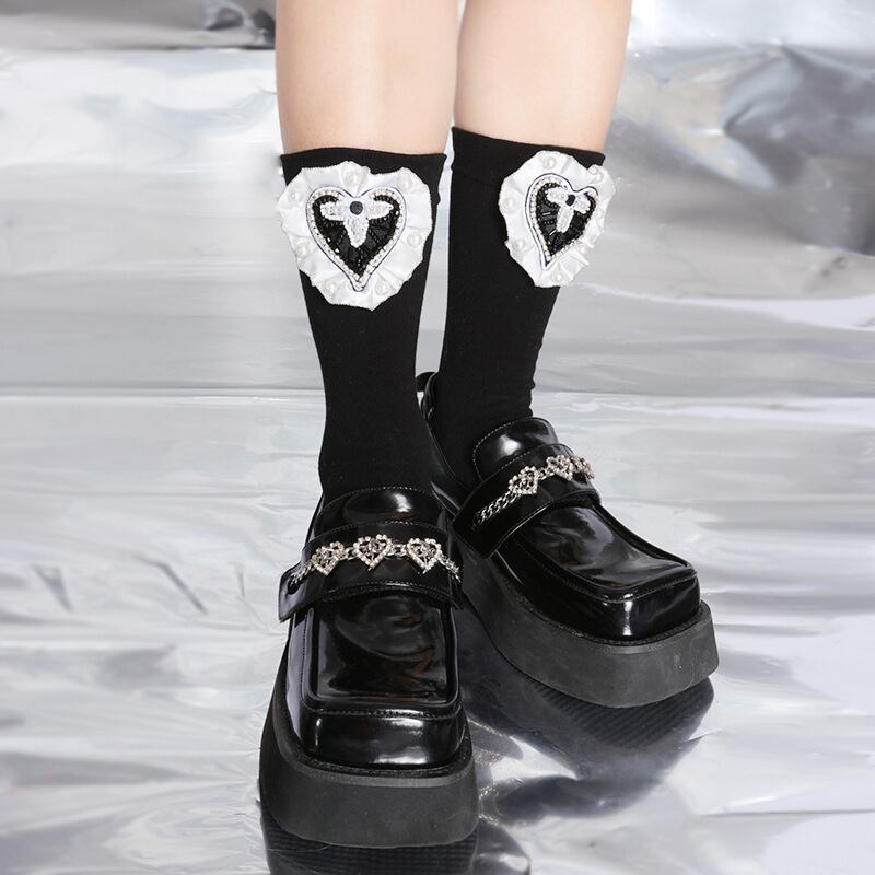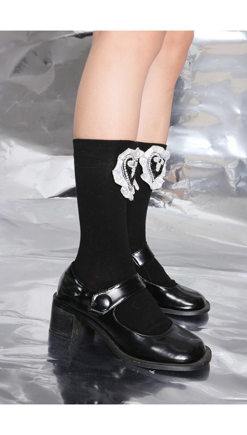 パールクロスブラックホワイトダークソックス スカート 大人ガーリー スウィート キュート カジュアル タイツ ストッキング 真珠 GroundMODE349884524168 | pleglad Ground