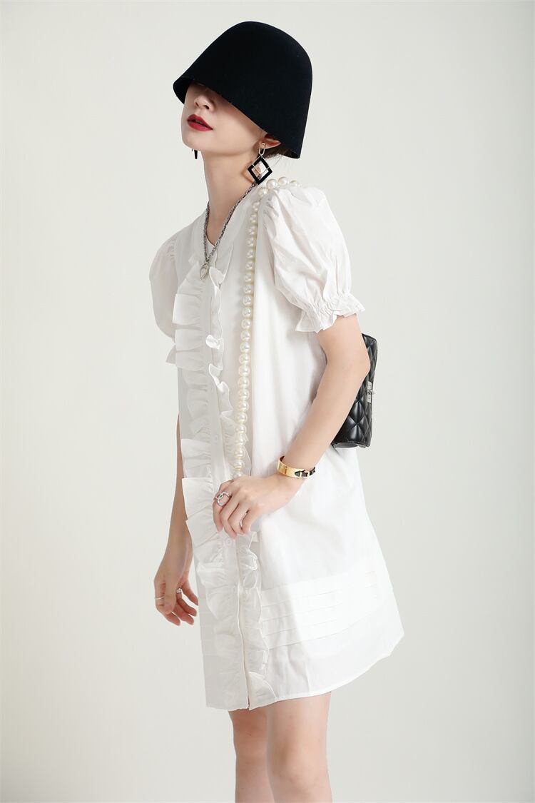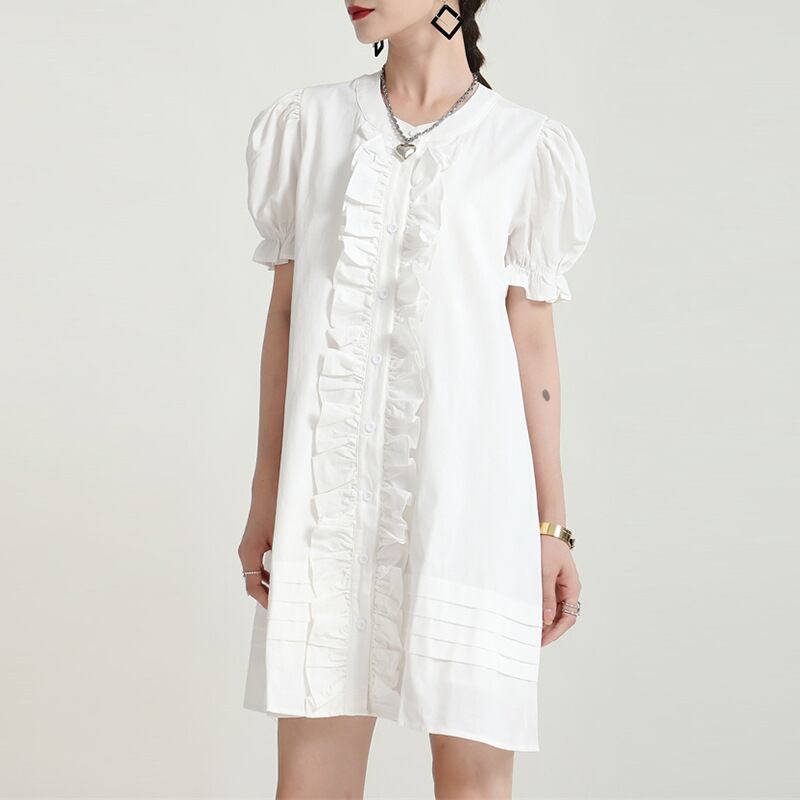 ワンピース夏服スリーブルーズAラインスカート 大人ガーリー スウィート キュート カジュアル 夏物 フラワーデザイン ミドル丈 GroundMODE38907649707 | pleglad Ground