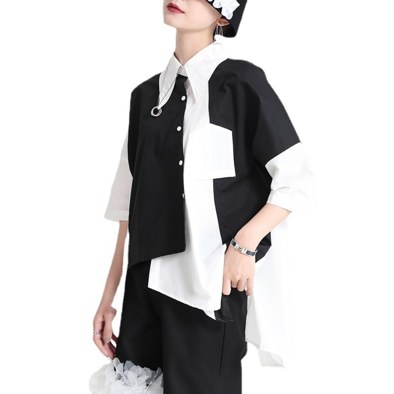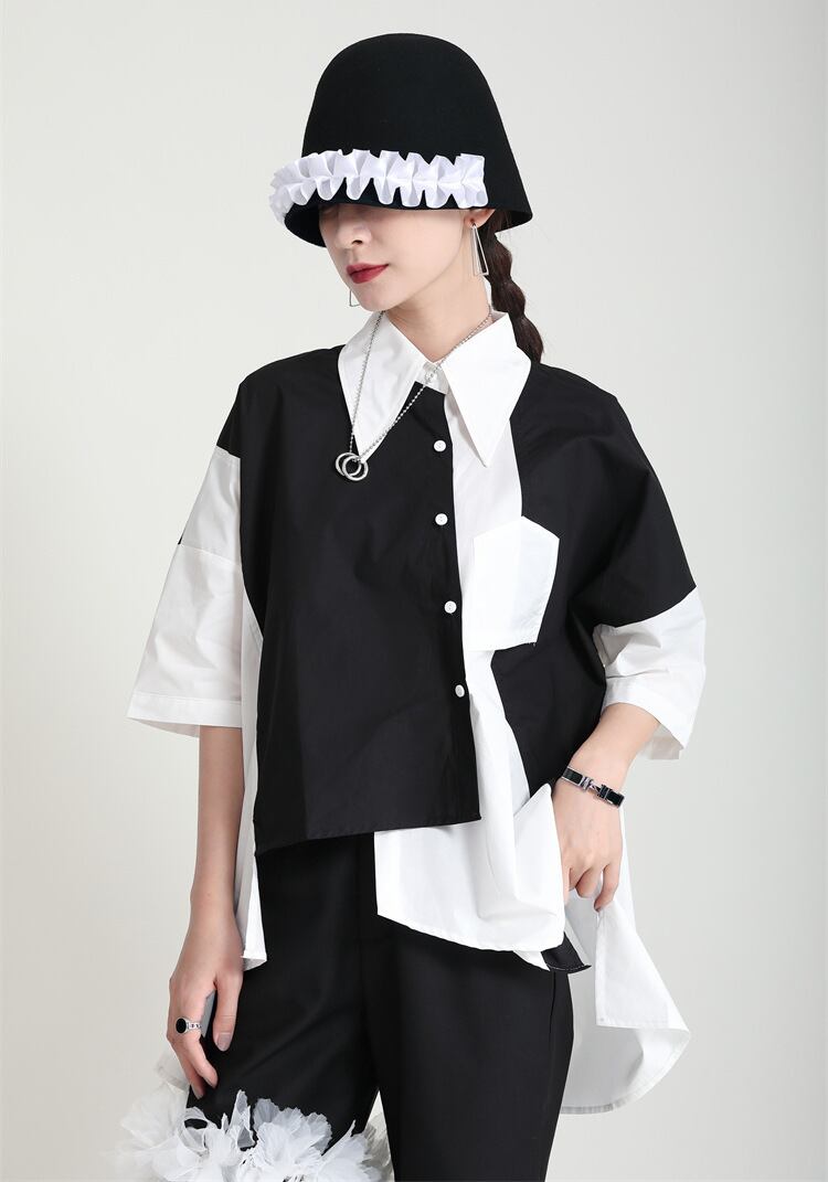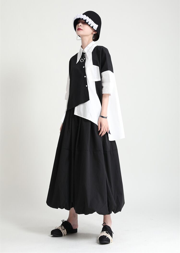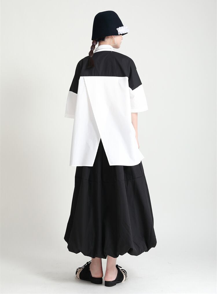 夏服ルーズシャツ バックブラックホワイトカラーレディース 夏物 ミドル丈 GroundMODE334066272245