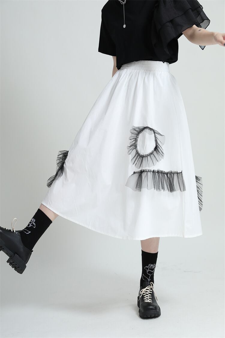 レースAラインスカート 夏服ハイウェストウェスト薄手ストレッチ エラスティック 伸縮 夏物 ステッチ ウエスト ミドル丈 GroundMODE326555981422 | pleglad Ground