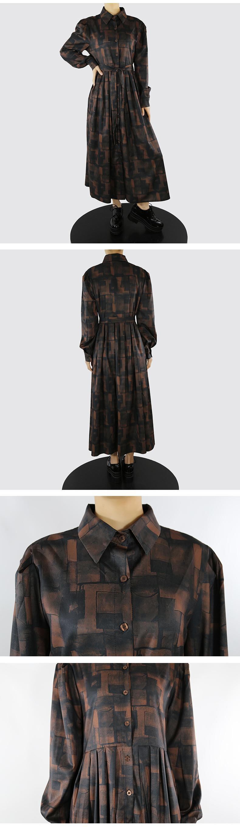 スタンダードスプリング秋物プリントワンピースレディース ロング レトロ レース 大きめサイズ 春物 オータム レースアップ 長袖 GroundMODE70609072987 | pleglad Ground