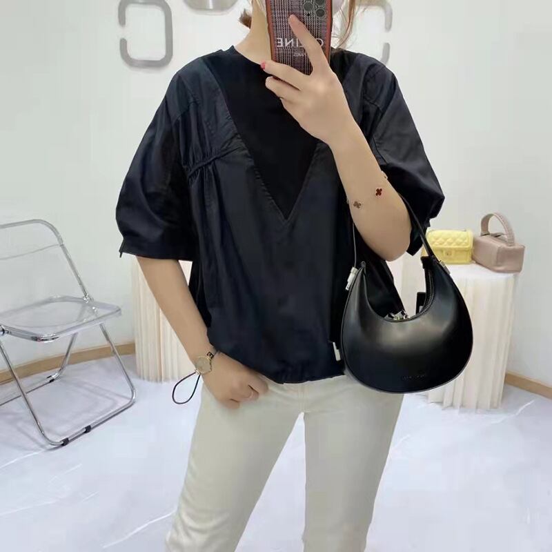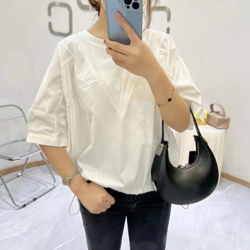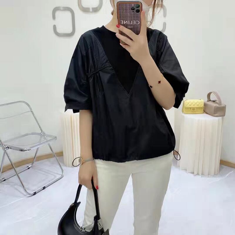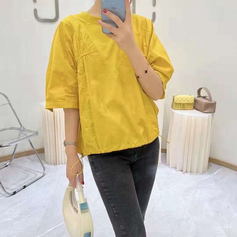 プリーツトップス 夏服韓国ファッションラウンドネックソリッド カラーTシャツ コットン 夏物 Oネック ソリッドカラー ステッチ GroundMODE23657917872 | pleglad Ground