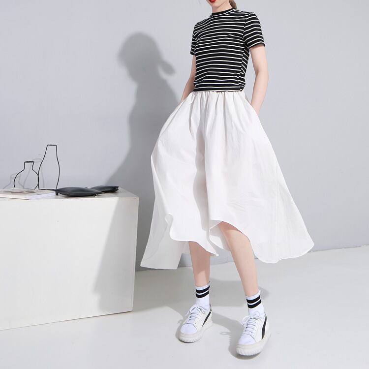 ワイドレッグパンツ アシンメトリーストレッチウェスト韓国ファッションレディース エラスティック 伸縮 ワイドパンツ ウエスト GroundMODE327780371422 | pleglad Ground
