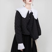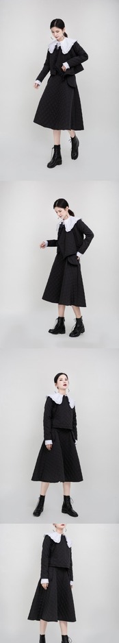色:黒,コットンジャケット+ホワイトトップ+スカートのスリーピースセット