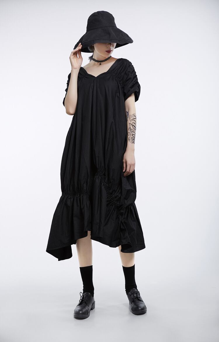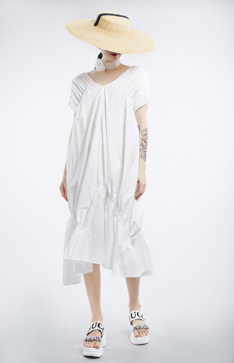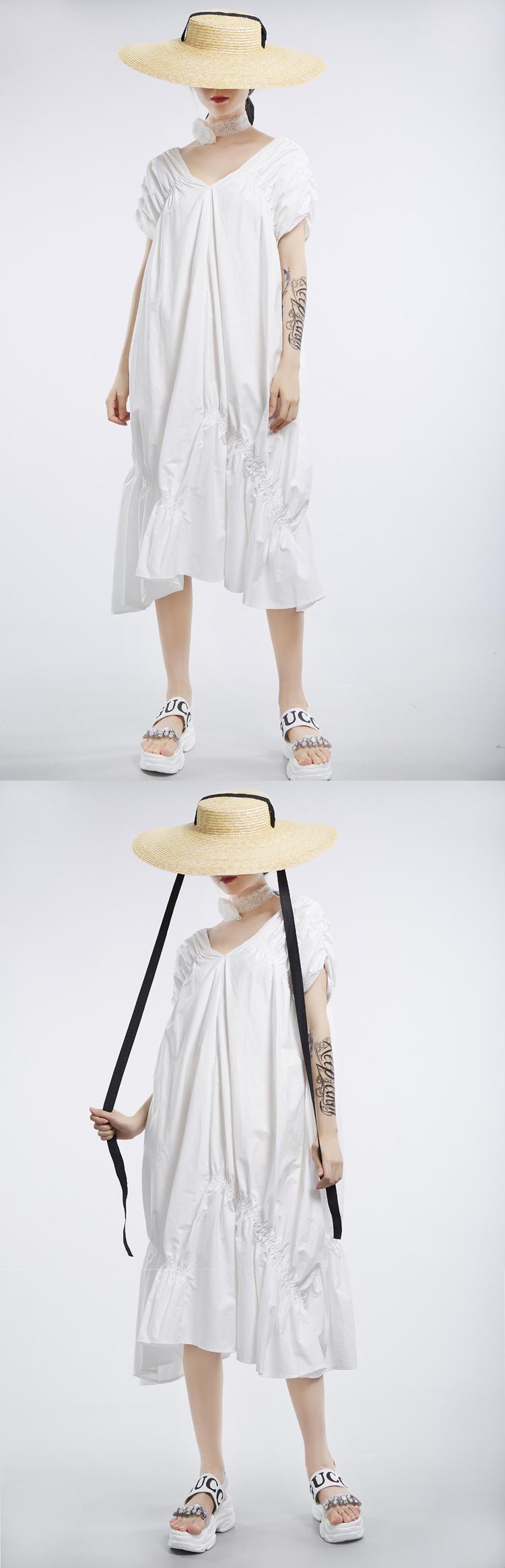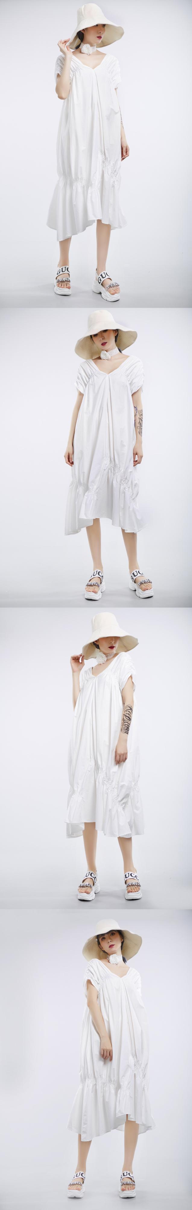 スカート 韓国ファッションVネックルーズスタンダードプリーツワンピース夏服 レトロ 夏物 フラワーデザイン スタイル ミドル丈 GroundMODE366851257900 | pleglad Ground