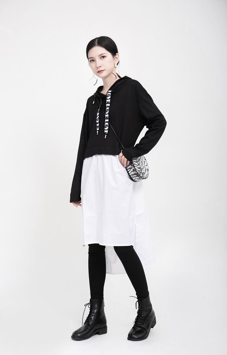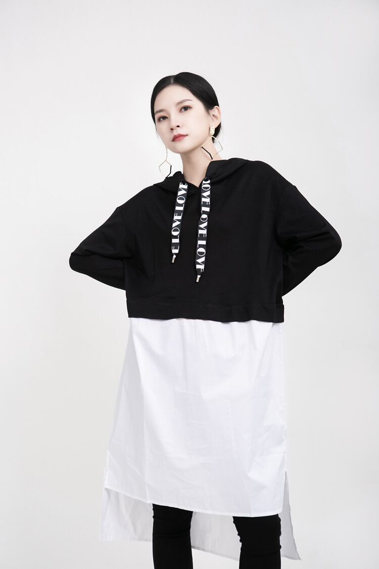 スプリング夏服セーター レディースNEWルーズスタイル韓国ファッションフードワンピース ロング 春物 夏物 ステッチ ボーイズ 長袖 GroundMODE398734832888 | pleglad Ground