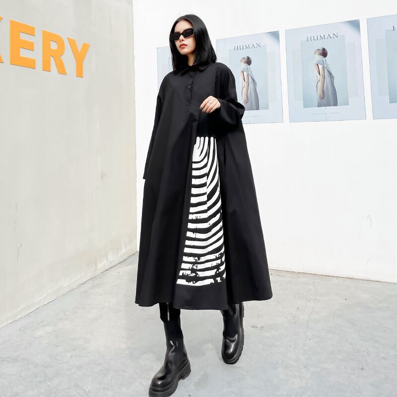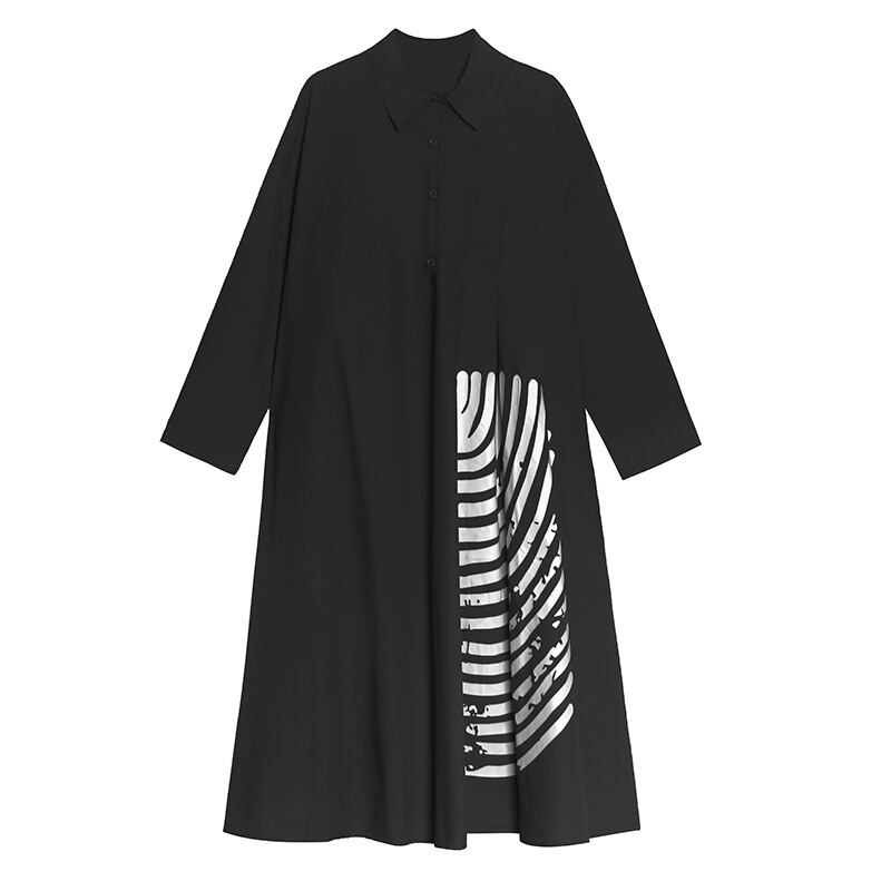 サイドバックプリント柄ワンピーススプリング秋物シャツ スカート Aライン ロング 春物 オータム ヨーロピアン 長袖 ミドル丈 GroundMODE551625702151 | pleglad Ground