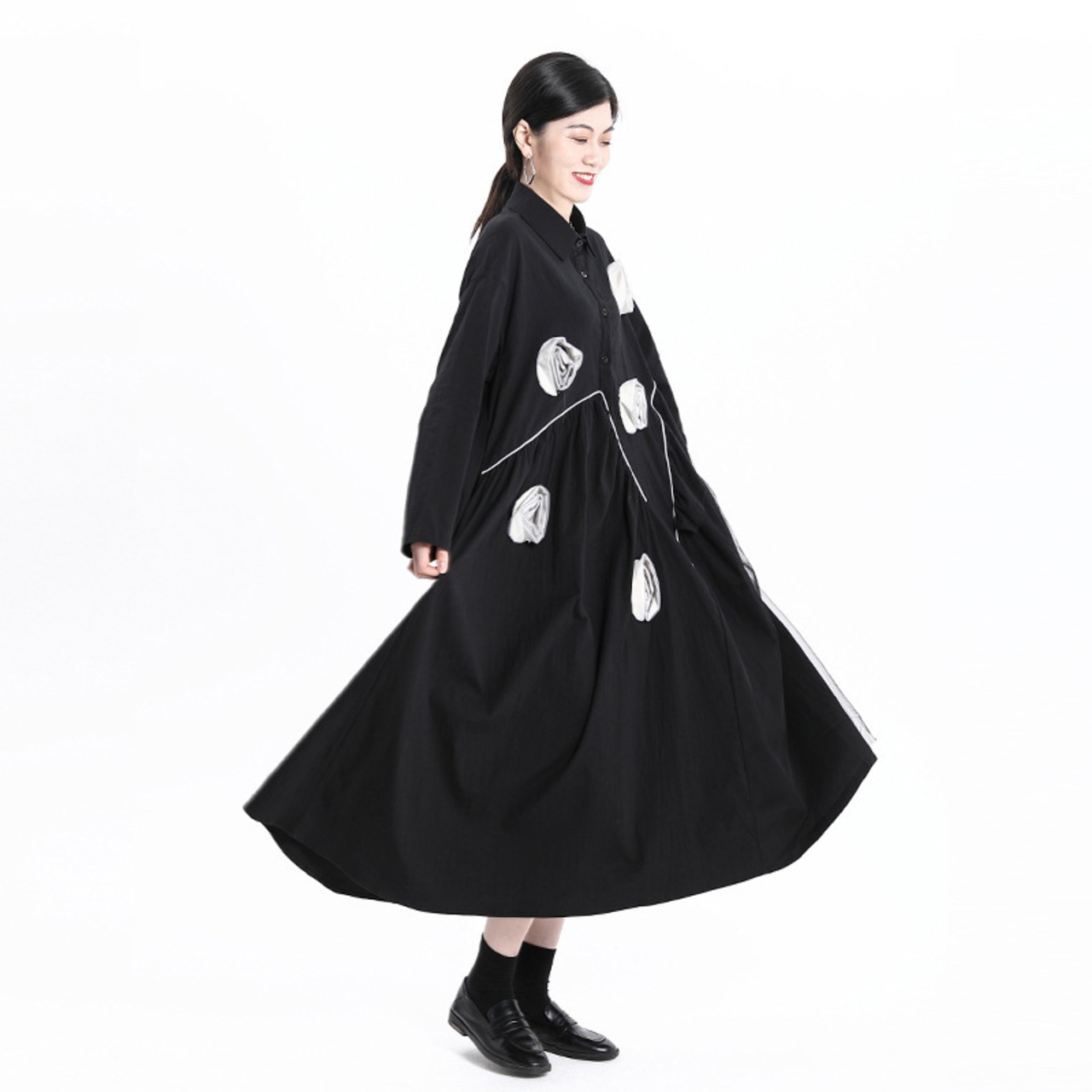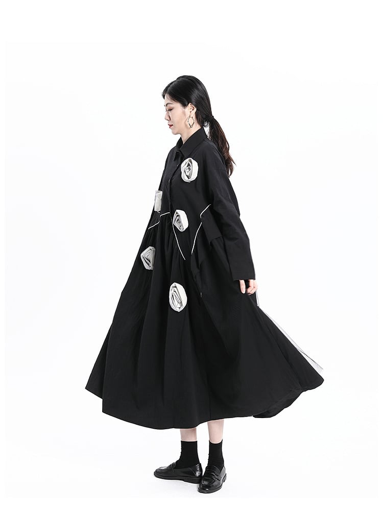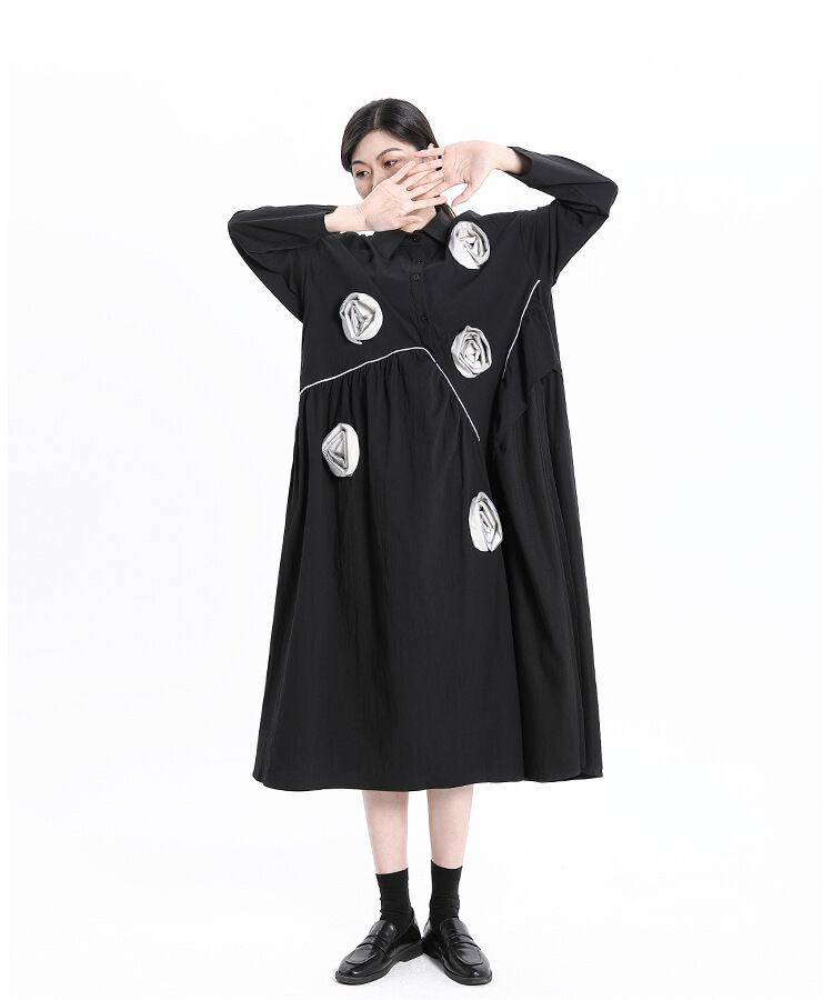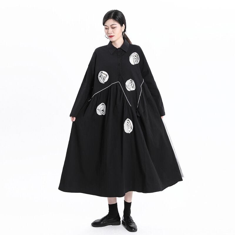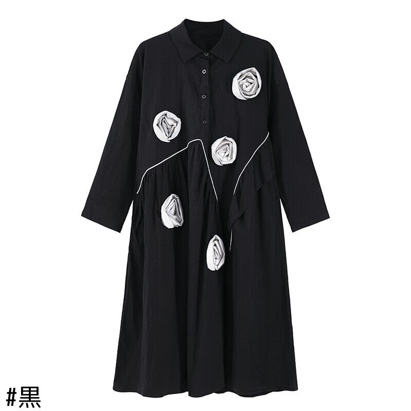 ダークスタイルFlowerデザイン ワンピースレディーススプリングルーズ薄手Aラインシャツ スカート 春物 フラワーデザイン GroundMODE577305777767 | pleglad Ground