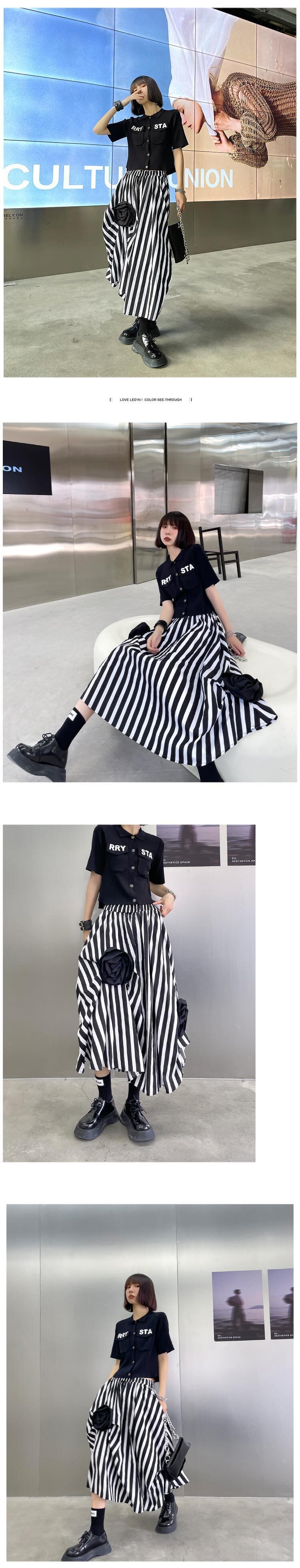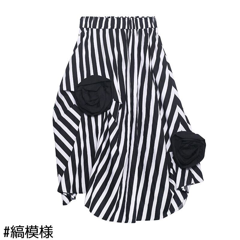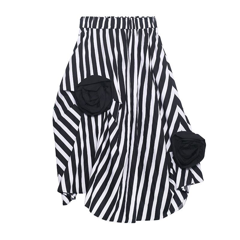 スタイルブラックホワイトストライプスカート 薄手ハイウェストウェストFlowerデザイン フラワーデザイン ヨーロピアン ウエスト GroundMODE534162743363 | pleglad Ground