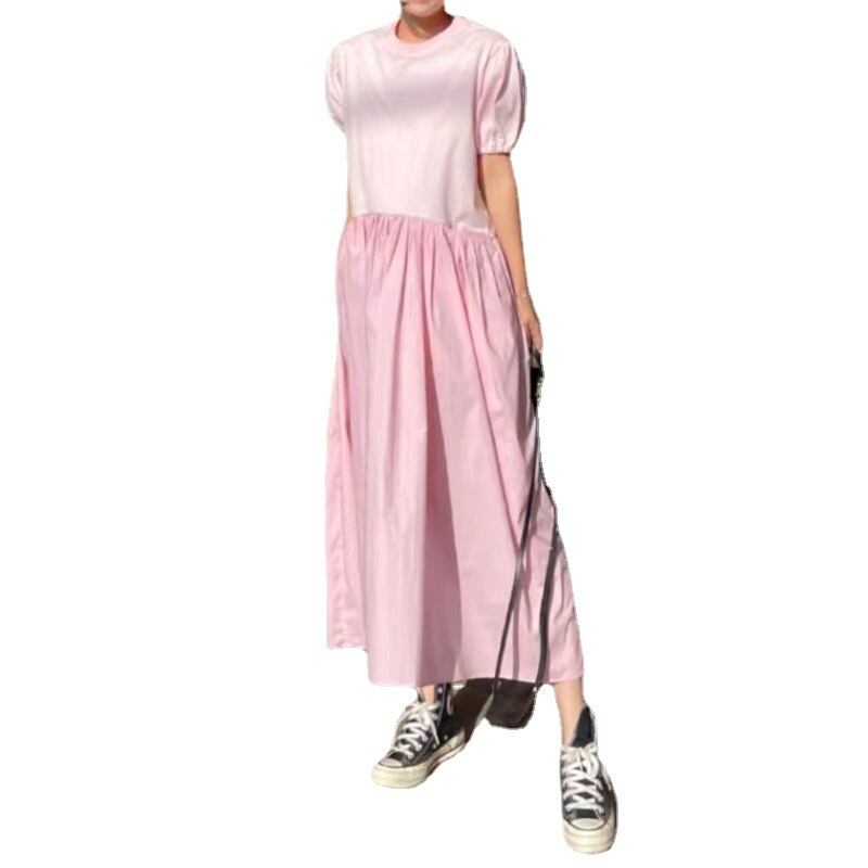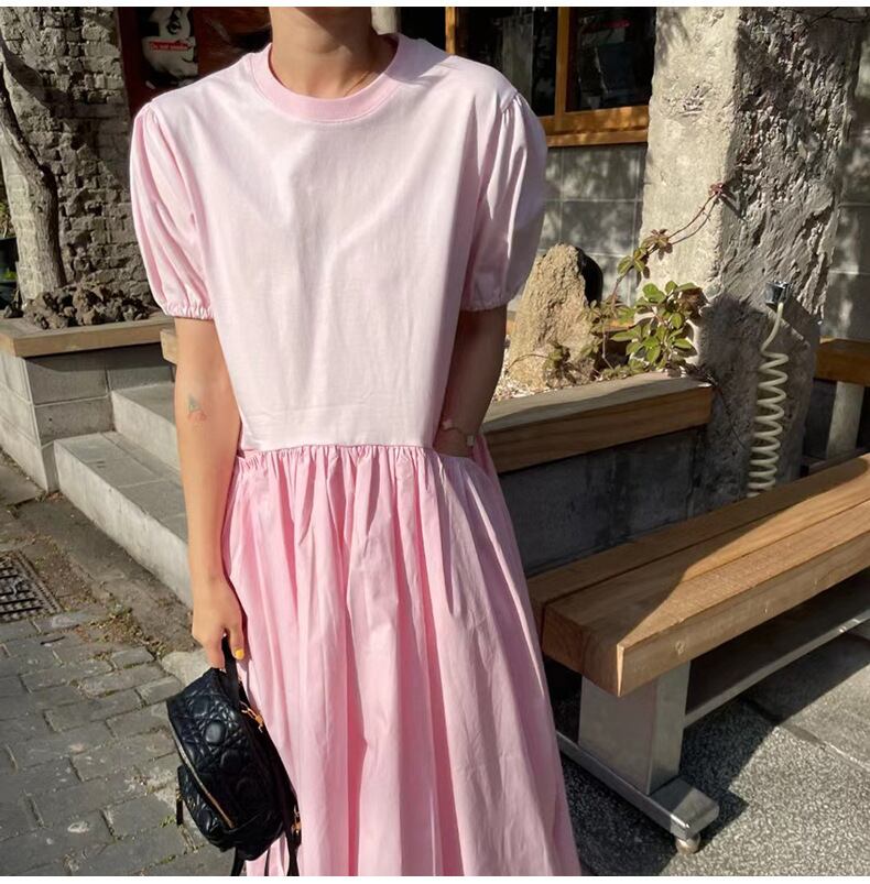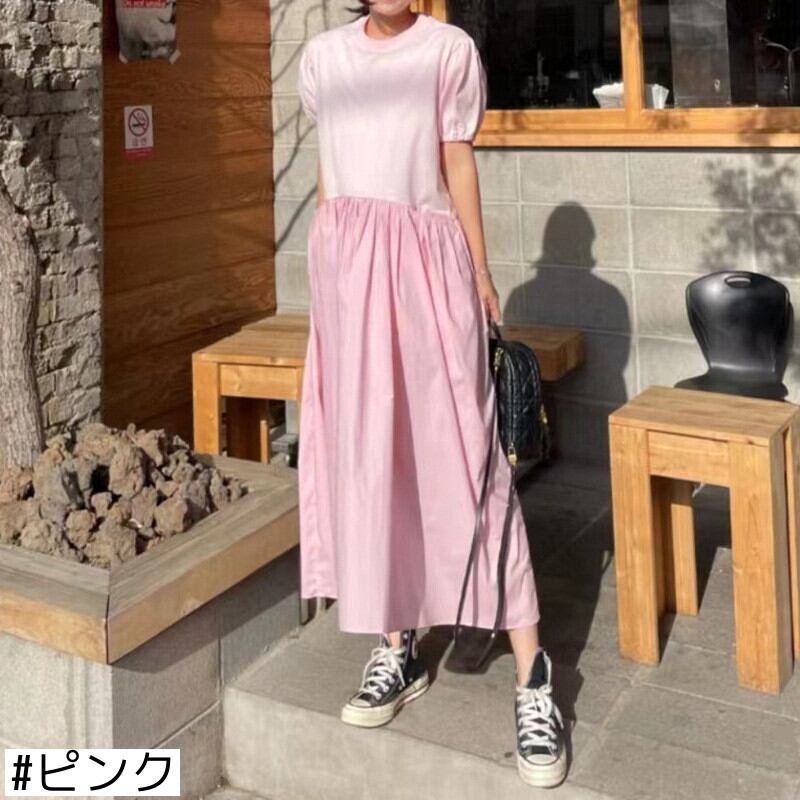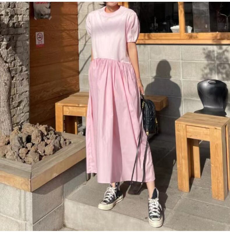 韓国ファッション夏服ワンピースルーズロングスカート 半袖スリーブラウンドネック ショート ハーフスリーブ 夏物 Oネック スタイル GroundMODE21207412564 | pleglad Ground