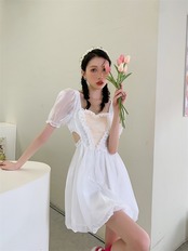 メッシュプリーツワンピースハイウェストウェストFlowerデザイン Aラインスカート ふわふわ フラワーデザイン パフスリーブ ウエスト GroundMODE246977090226 | pleglad Ground