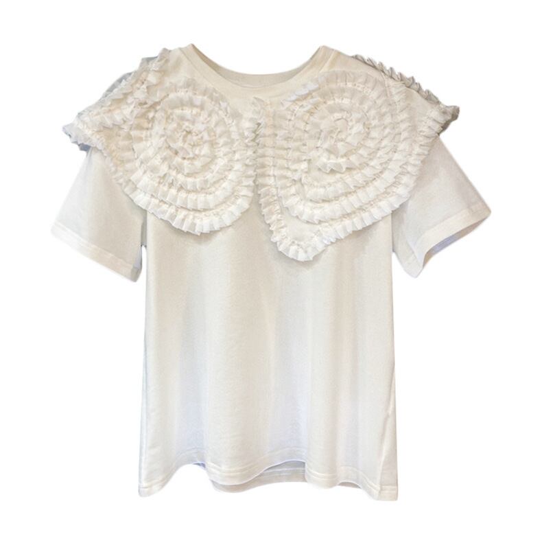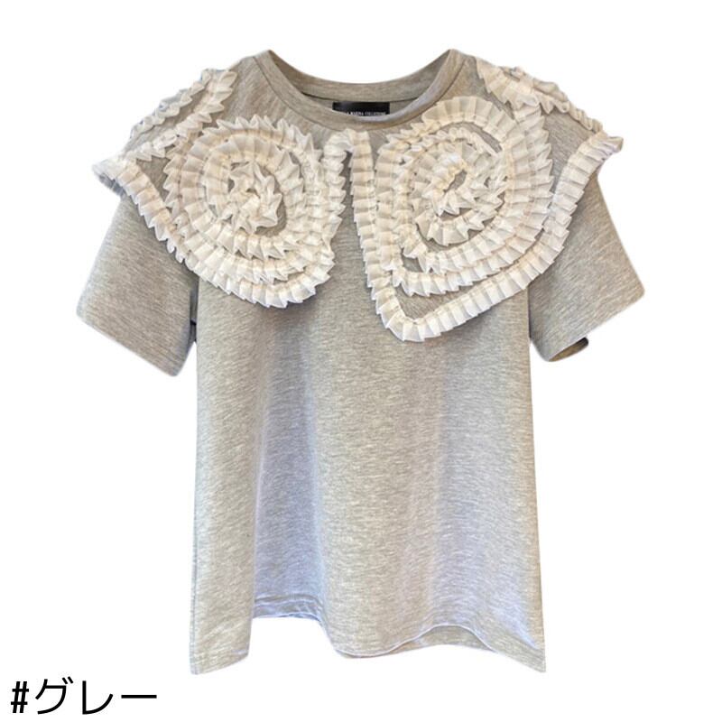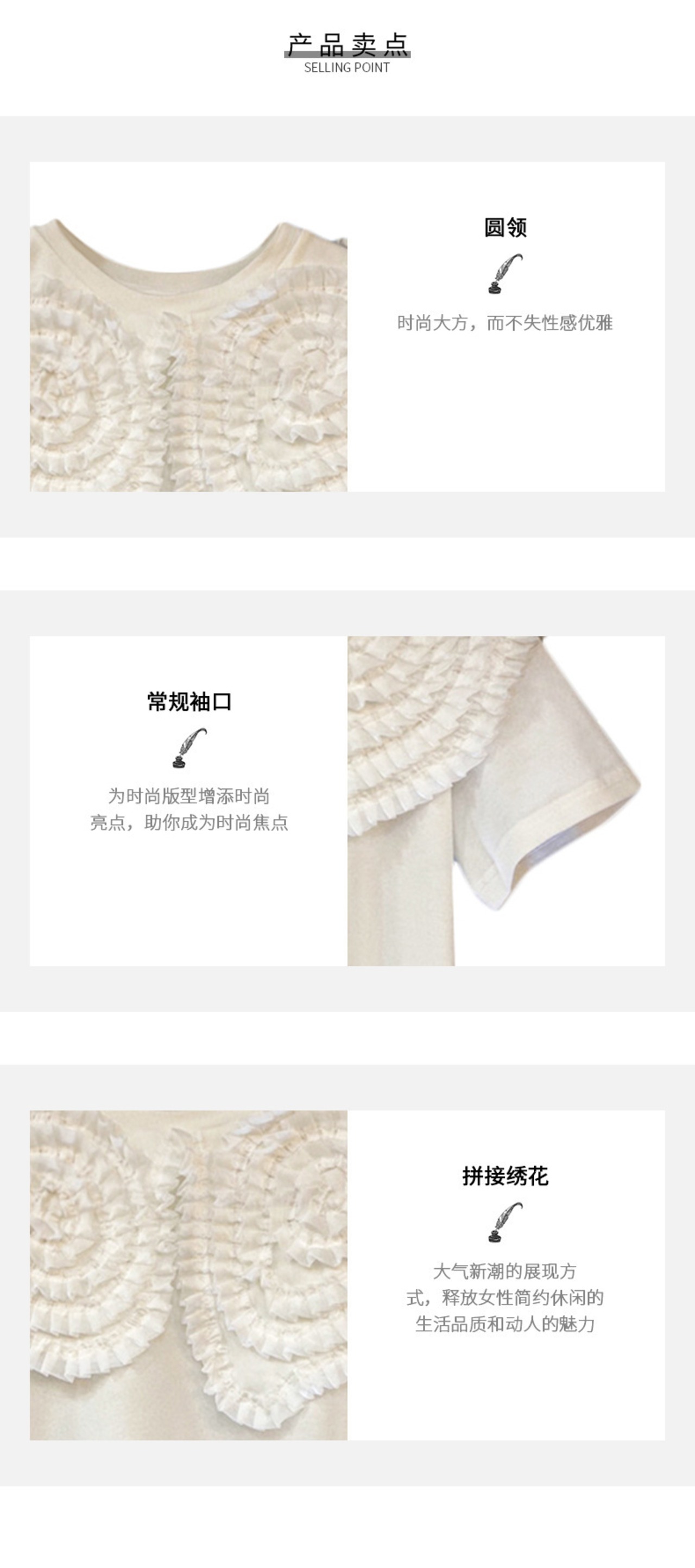 ソリッド カラーTシャツ夏服Flowerデザイン ラウンドネックトップス 夏物 Oネック ソリッドカラー フラワーデザイン ステッチ GroundMODE85107605288 | pleglad Ground