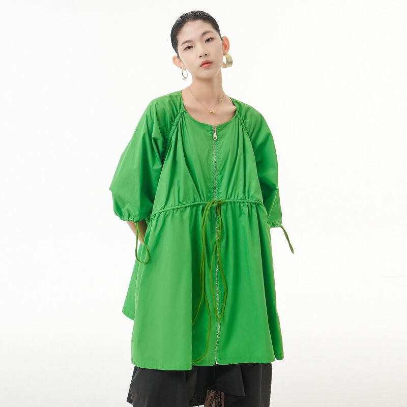 ジッパープリーツウェストシャツ 夏服ルーズスリーブカーディガン ランタンスリーブ 大きめサイズ 夏物 ヨーロピアン ウエスト GroundMODE525761437015 | pleglad Ground