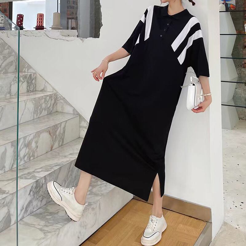 夏服韓国ファッションルーズTシャツスカート 半袖スリーブカラーワンピースレディース ショート ハーフスリーブ 大きめサイズ 夏物 スタイル GroundMODE93824898973 | pleglad Ground