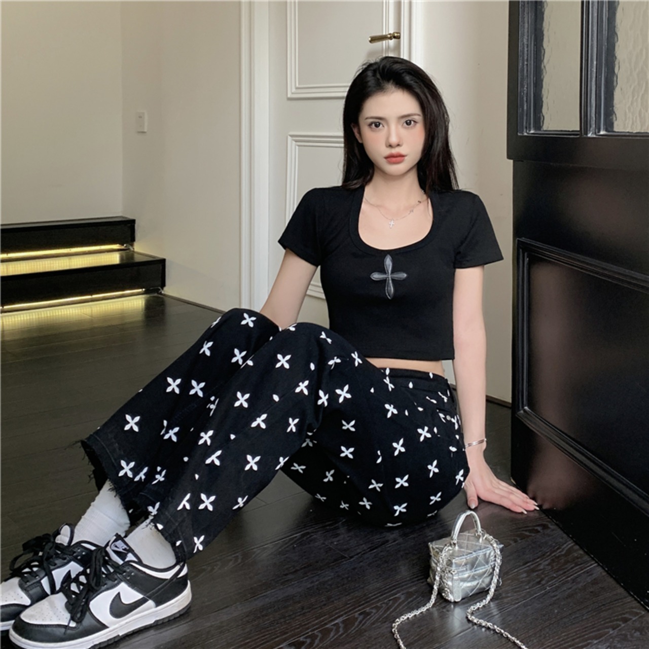 夏服ワンピースレディースショートクロスFlowerデザイン カラーカジュアルTシャツ 夏物 フラワーデザイン スクウェア GroundMODE272390713958 | pleglad Ground