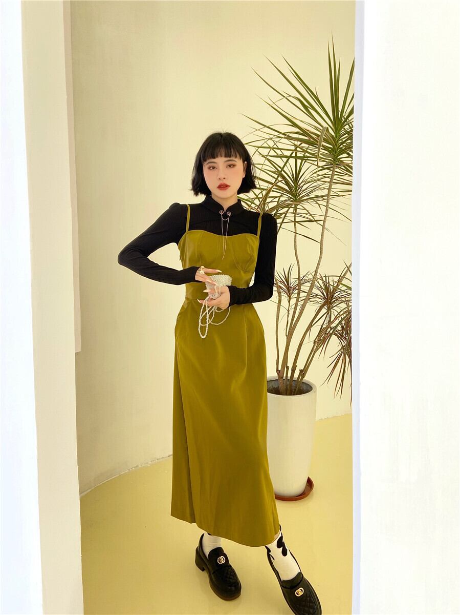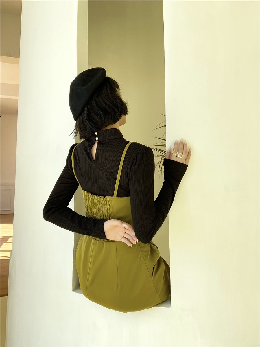 色:黒底シャツ,puサスペンダースカート