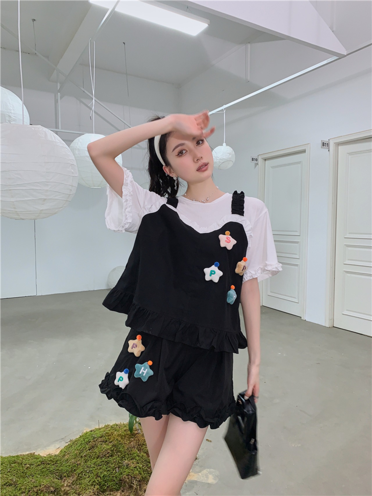 色:ブラックトップ,黒いズボン