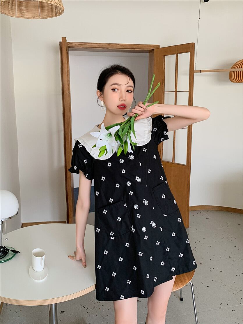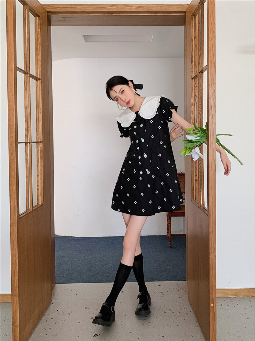 スタンダードカラーワンピースレディース夏服薄手韓国ファッションルーズスリーブAラインスカート レッド レトロ 刺繍 夏物 スタイル GroundMODE291669297649 | pleglad Ground