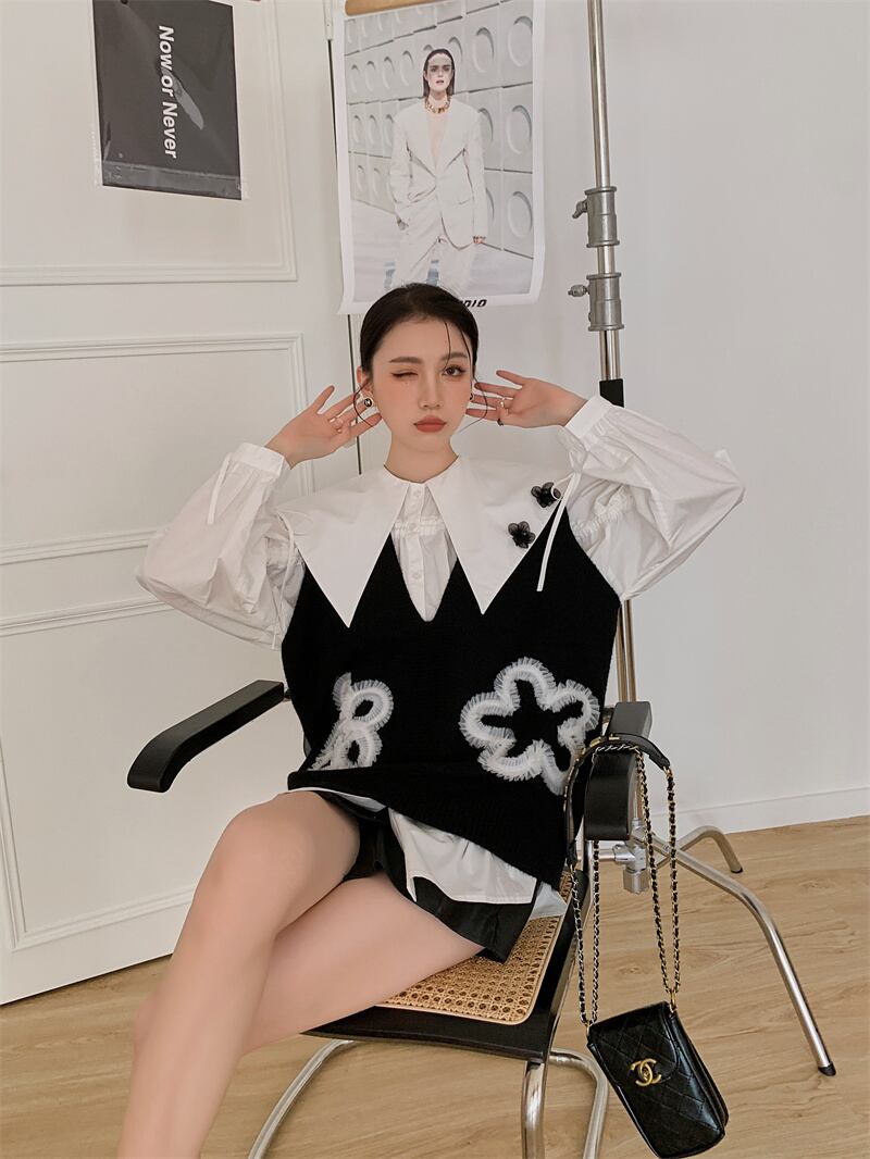 色:黒のベスト,白のシャツ