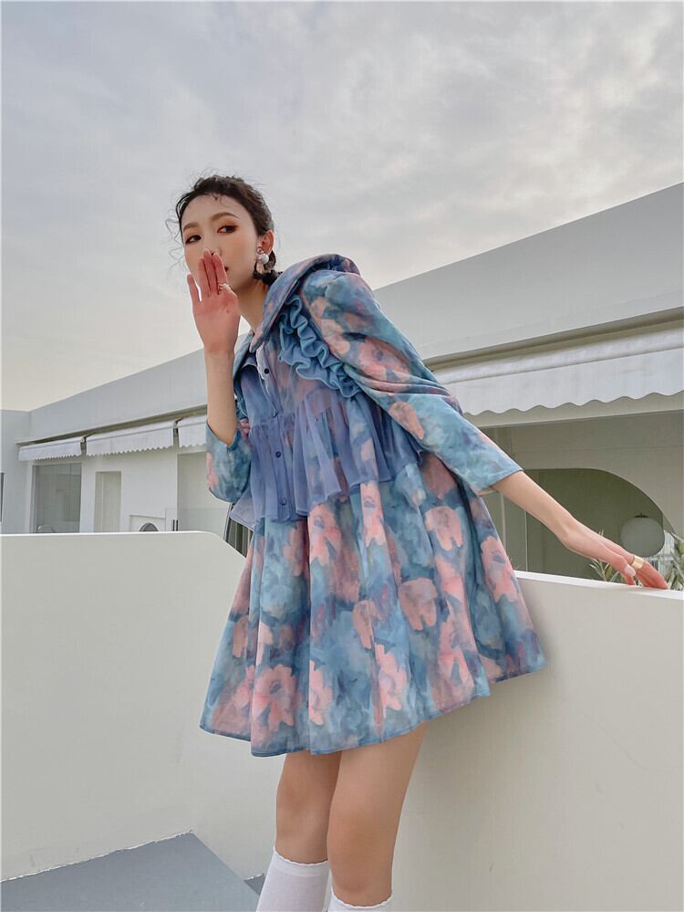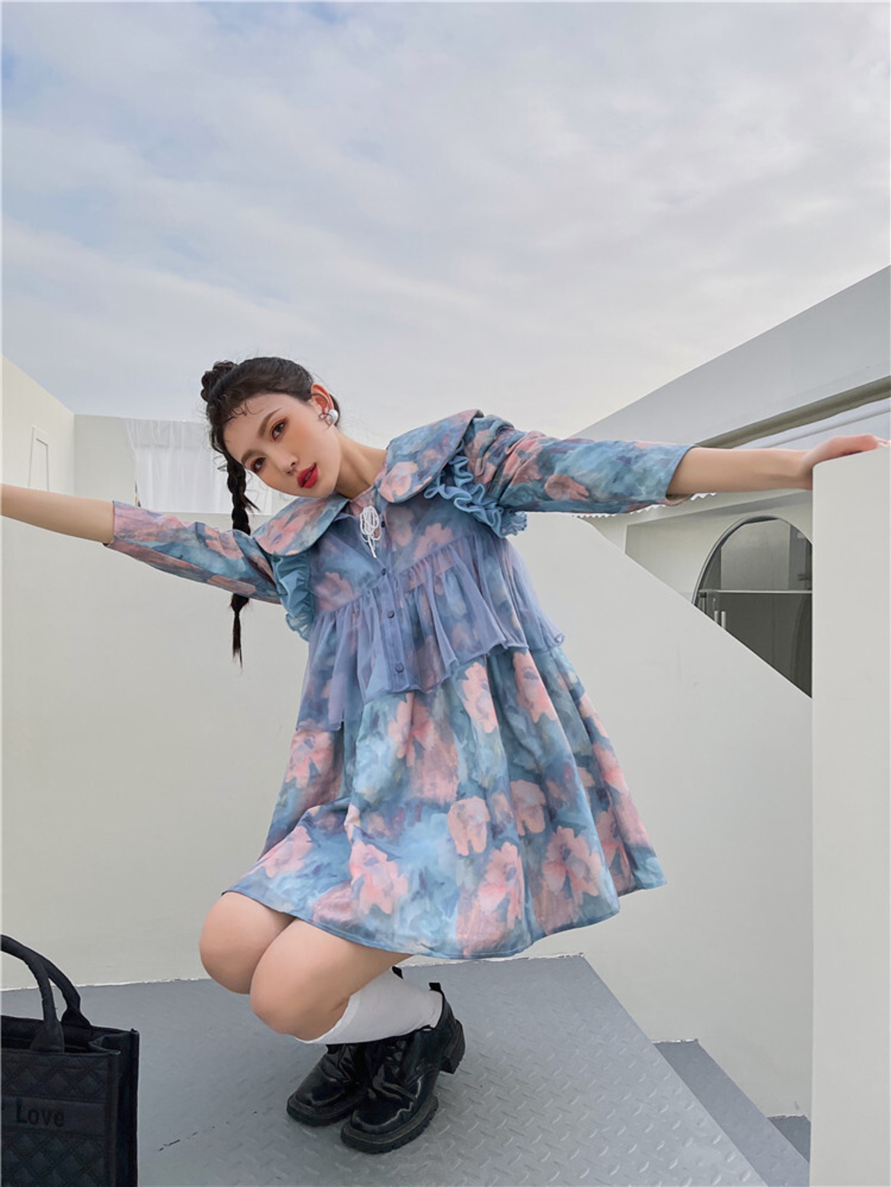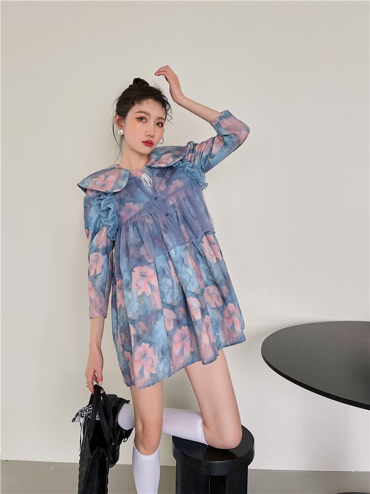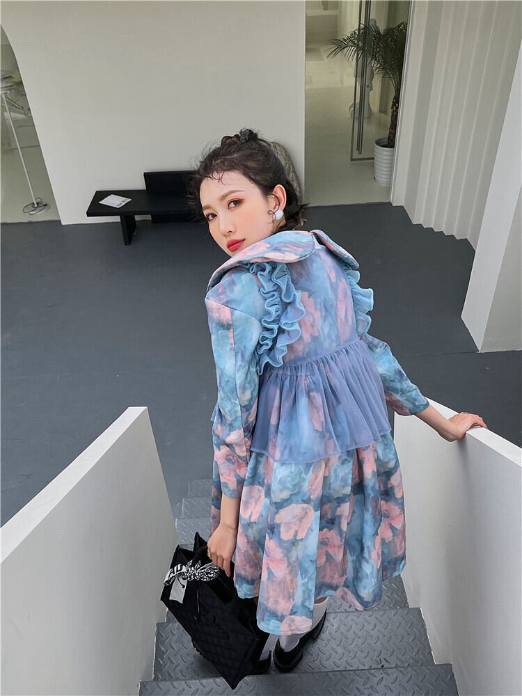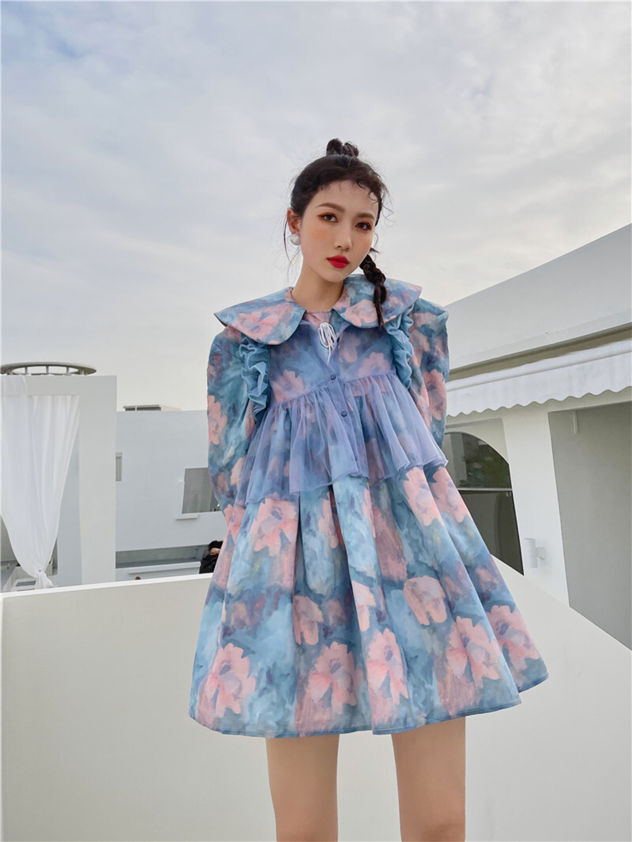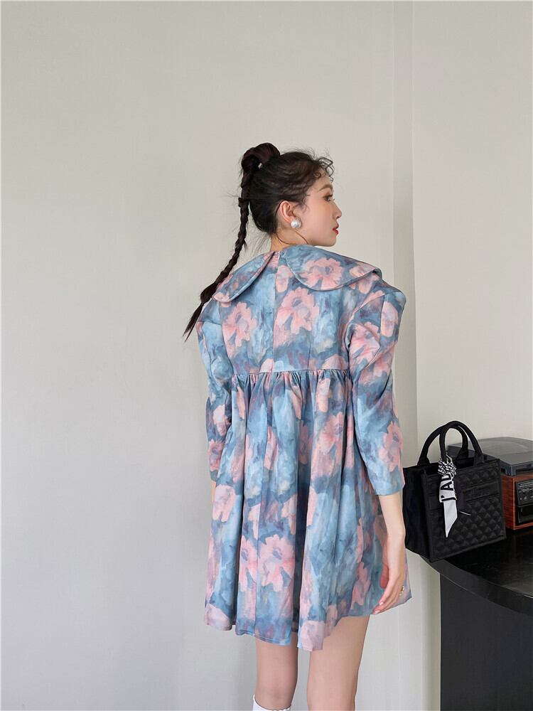 プリント柄Flowerデザイン パールスタンダードハイウェストウェストワンピース レトロ 真珠 フラワーデザイン ウエスト GroundMODE224186402767 | pleglad Ground