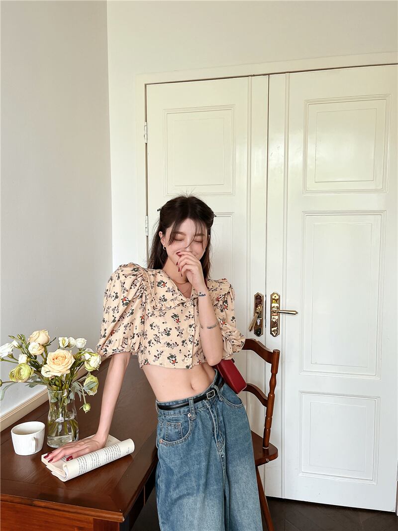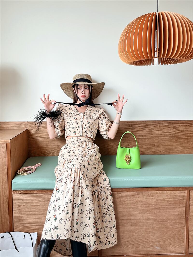スリーブショートフローラルシャツ スプリング夏服薄手トップス ハイウェストウェストAラインスカート セット 春物 夏物 花柄 ウエスト GroundMODE260832101143 | pleglad Ground