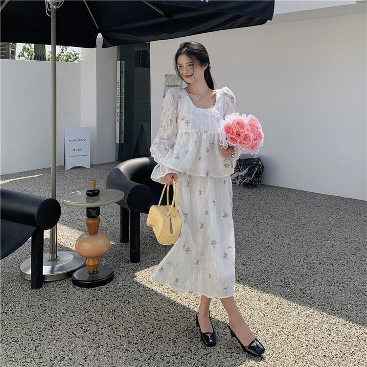 色:カラフルなプリントトップ,カラフルなプリントドレス