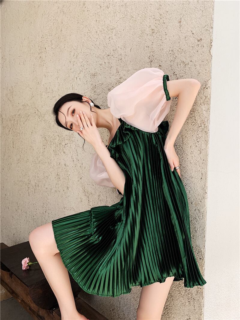 ワンピースプリーツショートスカート スリーブスプリング夏服レディース 大人ガーリー スウィート キュート カジュアル 春物 夏物 スクウェア GroundMODE267435740653 | pleglad Ground
