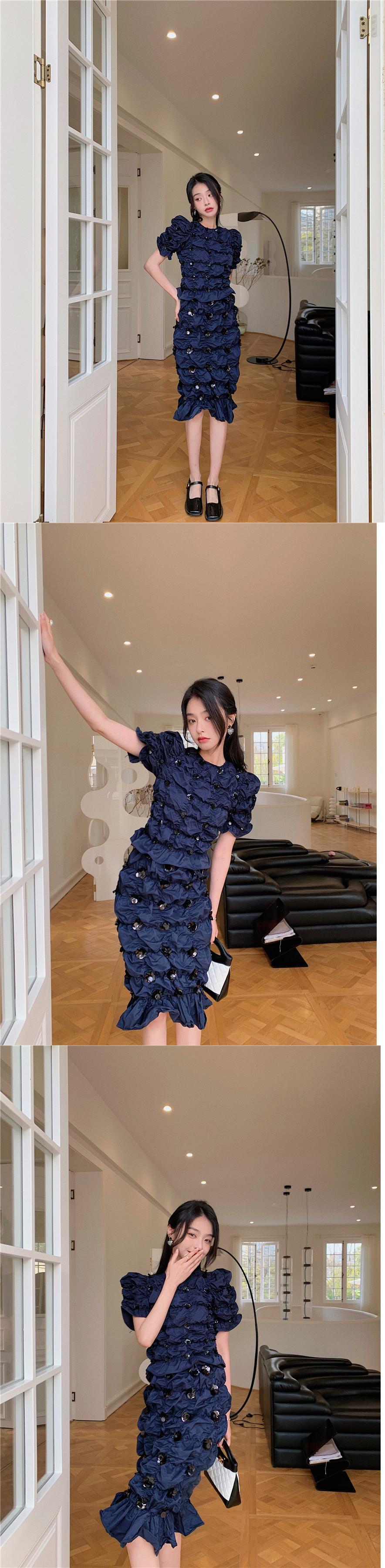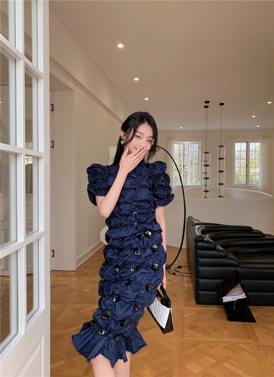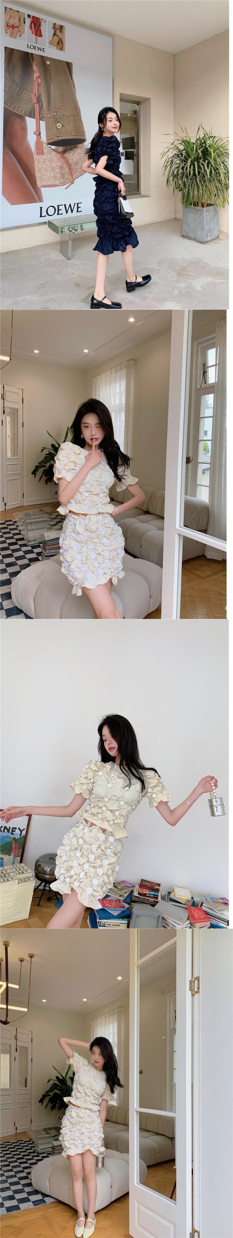Flowerデザイン プリーツトップス スカート 大人ガーリー スウィート キュート カジュアル フラワーデザイン NEW GroundMODE278588345234 | pleglad Ground