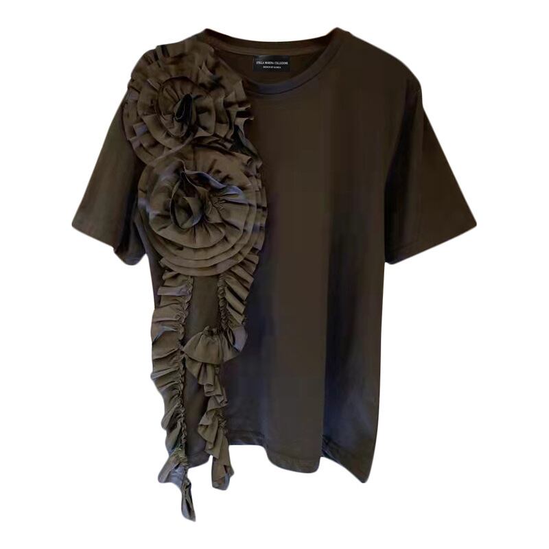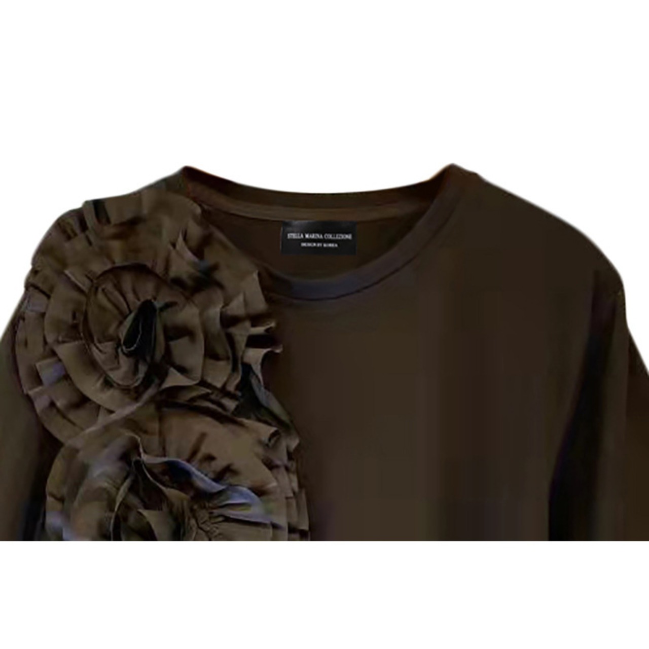 トップス 夏服ソリッド カラーFlowerデザイン ラウンドネックルーズ薄手Tシャツ 夏物 Oネック ソリッドカラー フラワーデザイン GroundMODE31497335731 | pleglad Ground