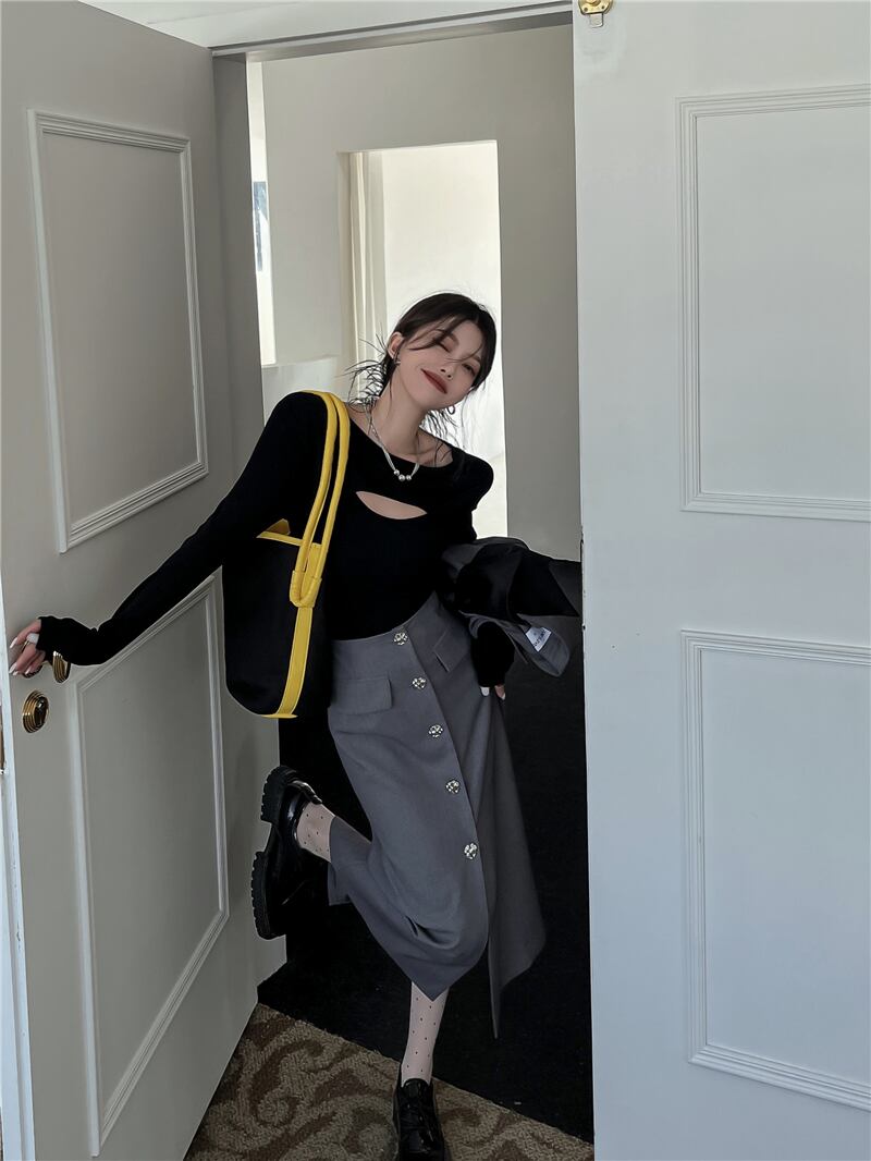 スプリング秋物ラウンドネックプルオーバー ソリッド カラーゆったりシャツ トップス 春物 オータム Oネック ソリッドカラー ステッチ GroundMODE298616298860 | pleglad Ground