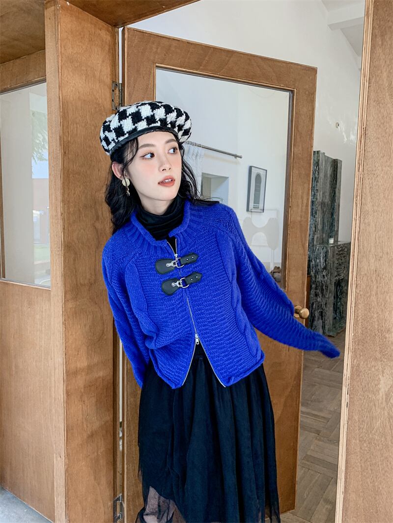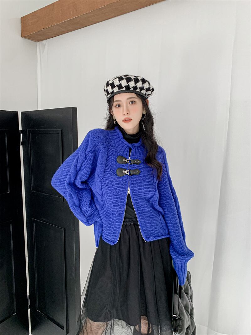 ブルーウールニットカーディガンコート 秋物ウィンターショート オータム 冬物 GroundMODE224579937806