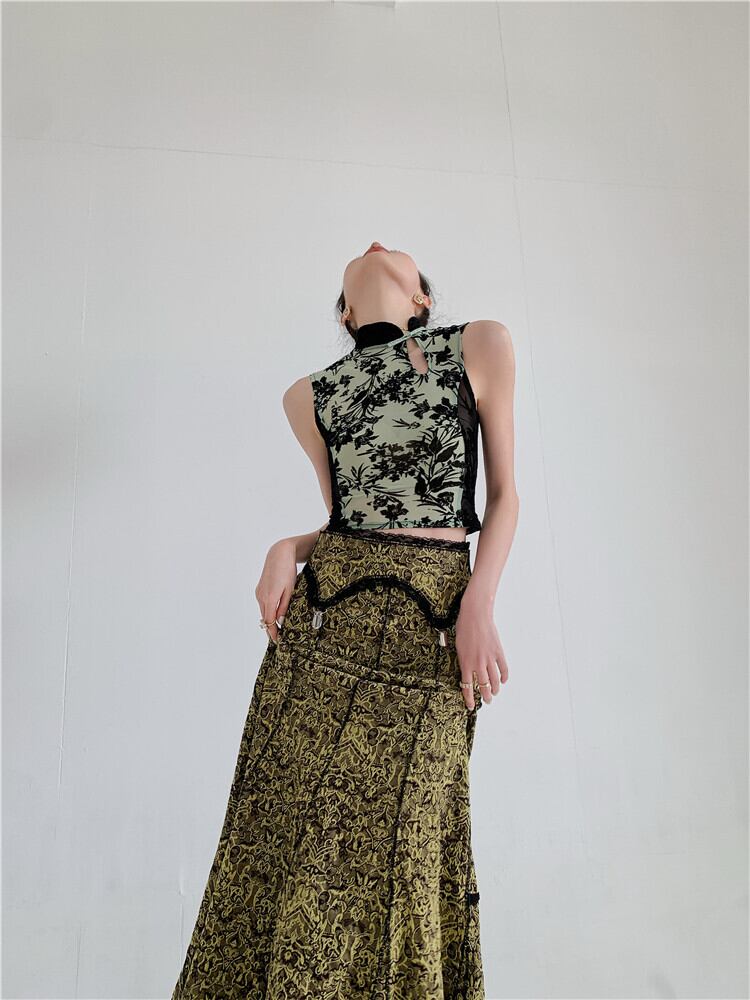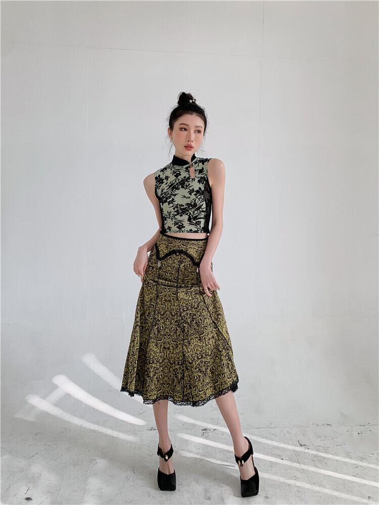 色:ストレッチ生地のトップス,ジャカードフィッシュテールドレス