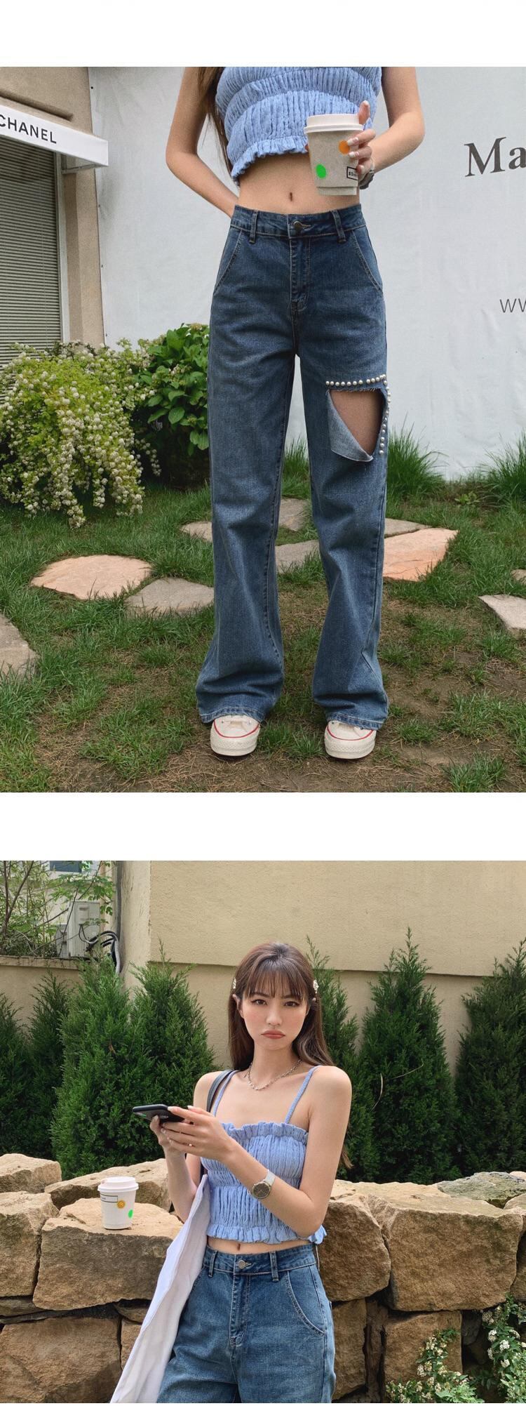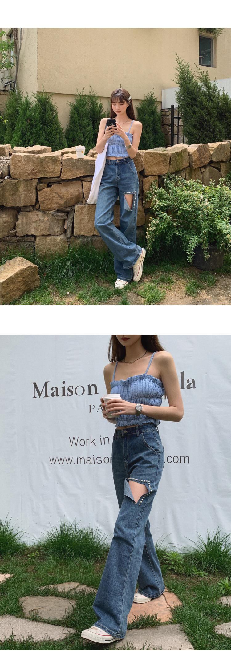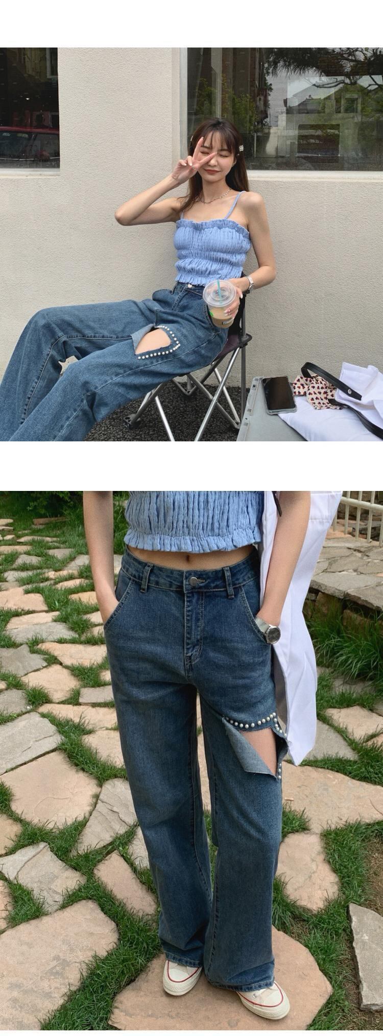 夏服ワンピーススタイルジーンズ ハイウェストウェストルーズダークブルーワイドレッグ レッド 夏物 ワイドパンツ ウエスト GroundMODE290502506667 | pleglad Ground