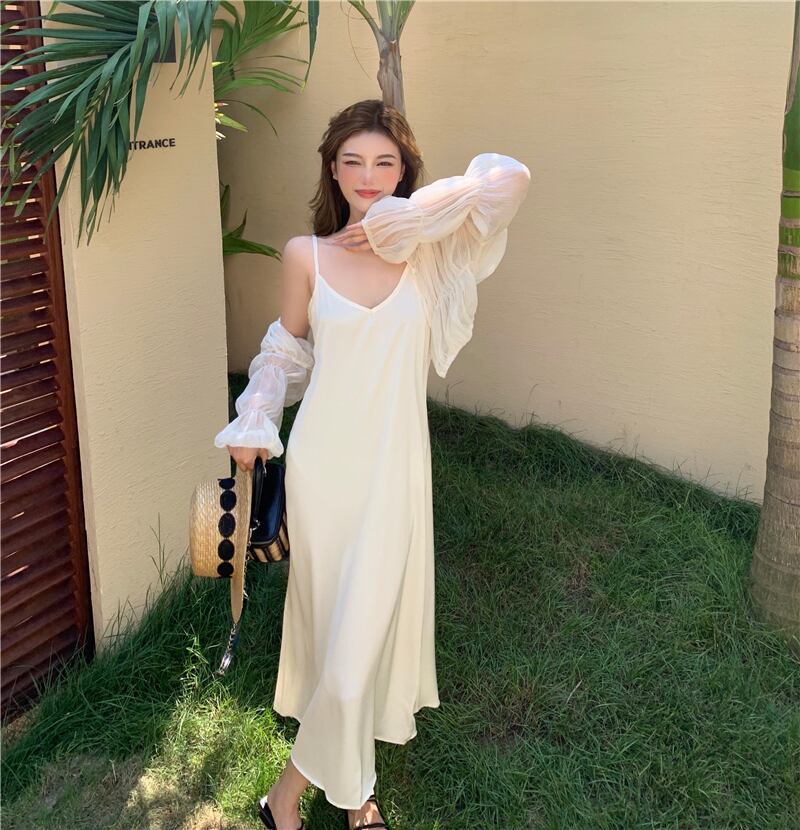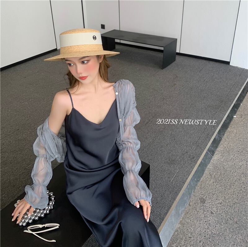 色:アプリコットカーディガン,グレーのカーディガン,グレーのドレス,アプリコットドレス