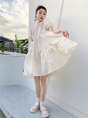 スタンダードスリーブワンピースレディース夏服スカート レトロ 大人ガーリー スウィート キュート カジュアル 夏物 パニエ ペチコート GroundMODE242089008613 | pleglad Ground