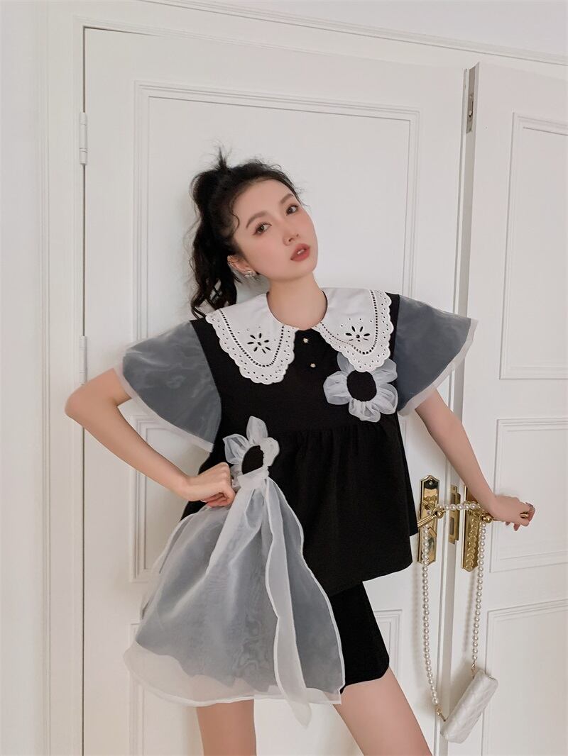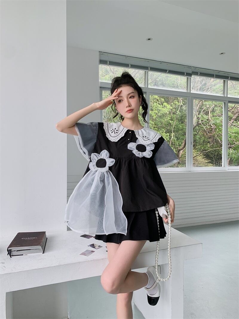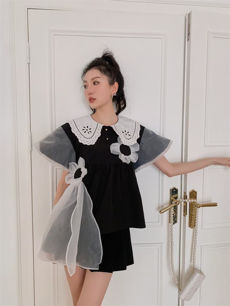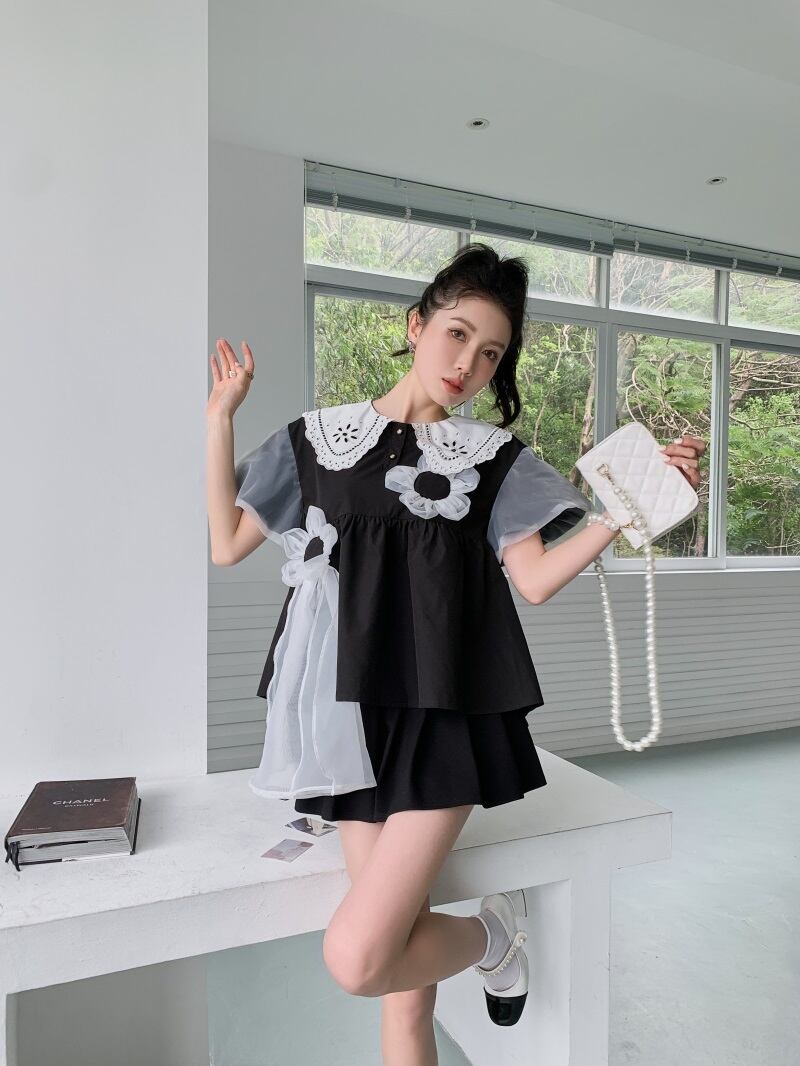 チェーン Flowerデザイン レースカラートップス 夏服フローラル 大人ガーリー スウィート キュート カジュアル 夏物 花柄 フラワーデザイン GroundMODE250794152343 | pleglad Ground