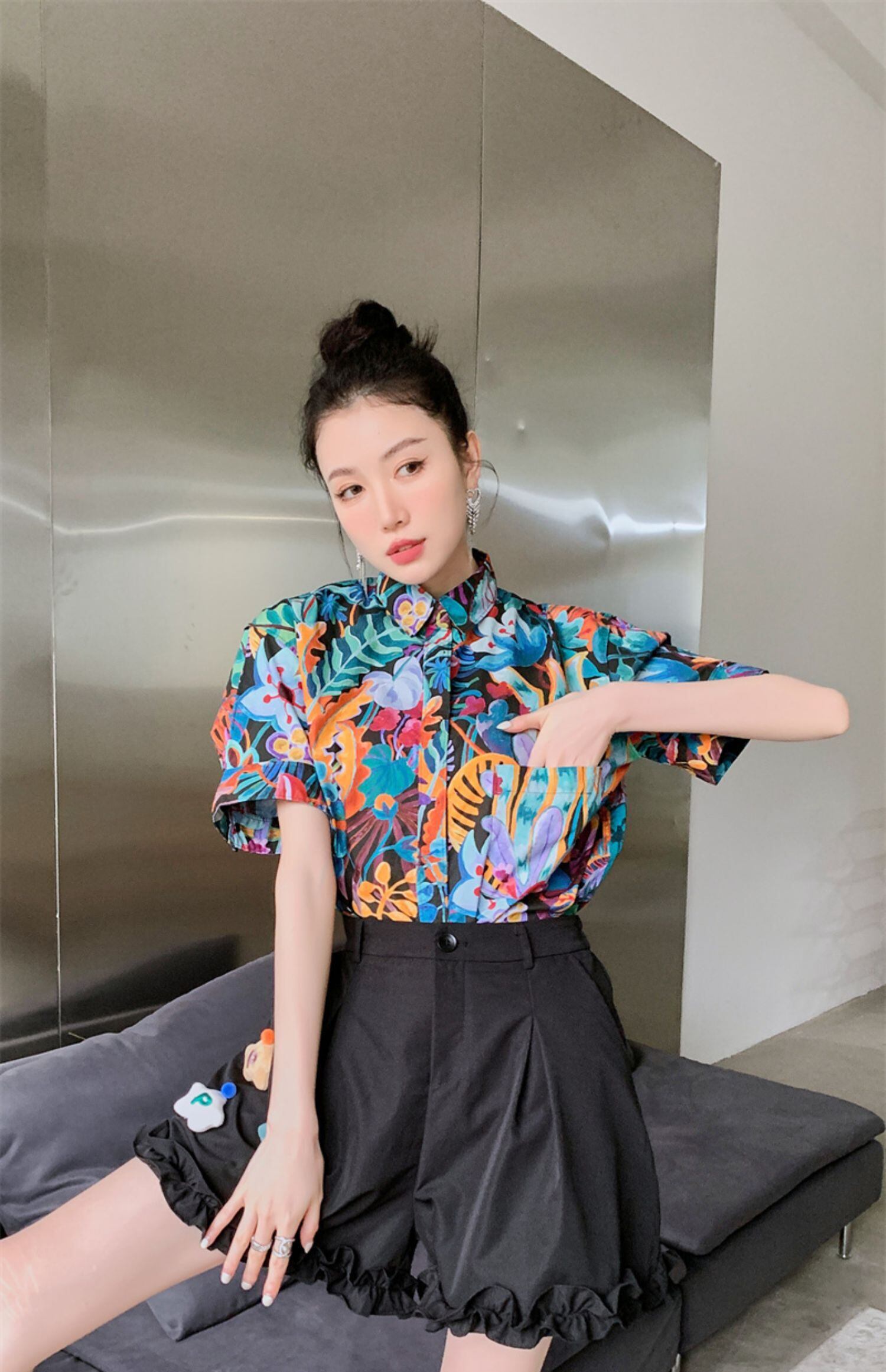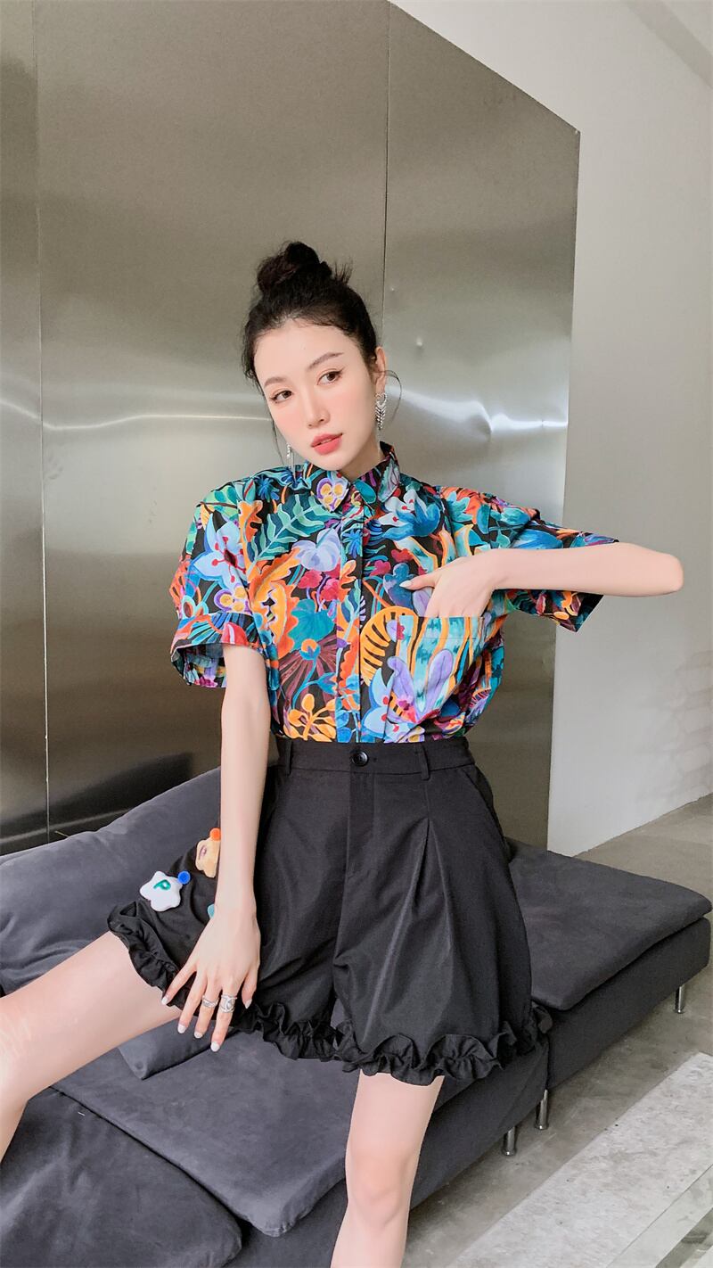 色:黒のショートパンツ,カラーシャツ
