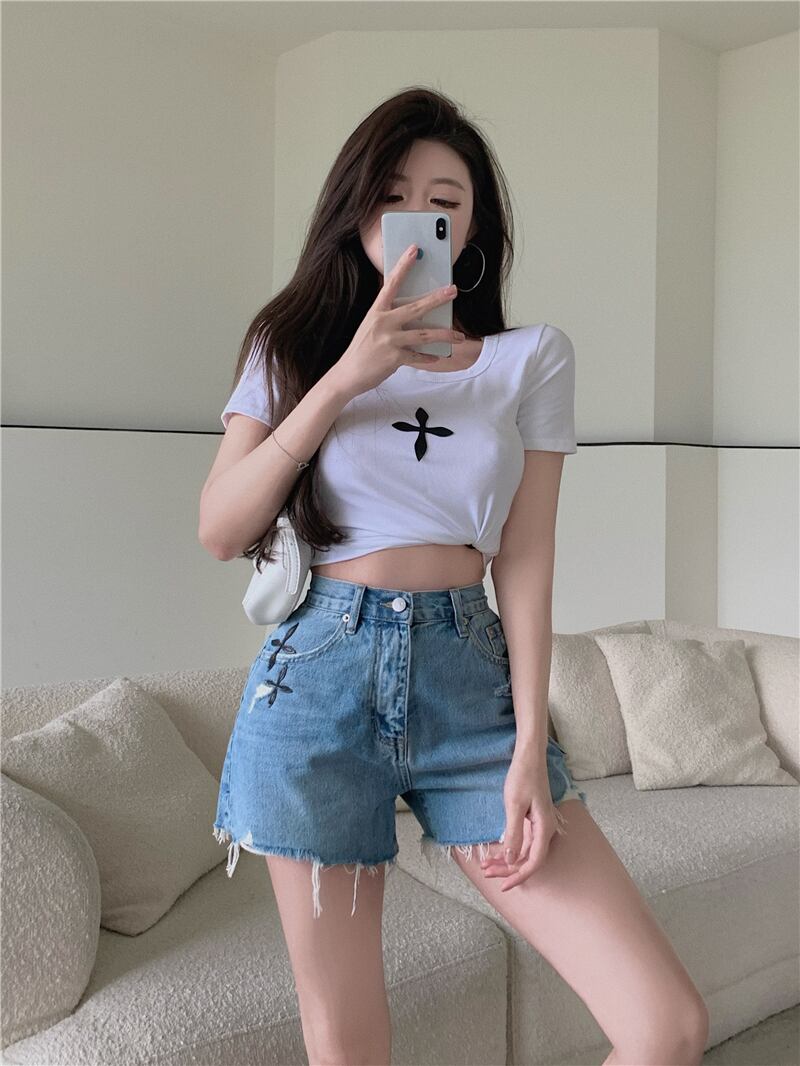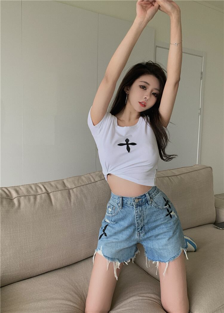 色:2200#白いTシャツ,A1-0290#デニムショートパンツ