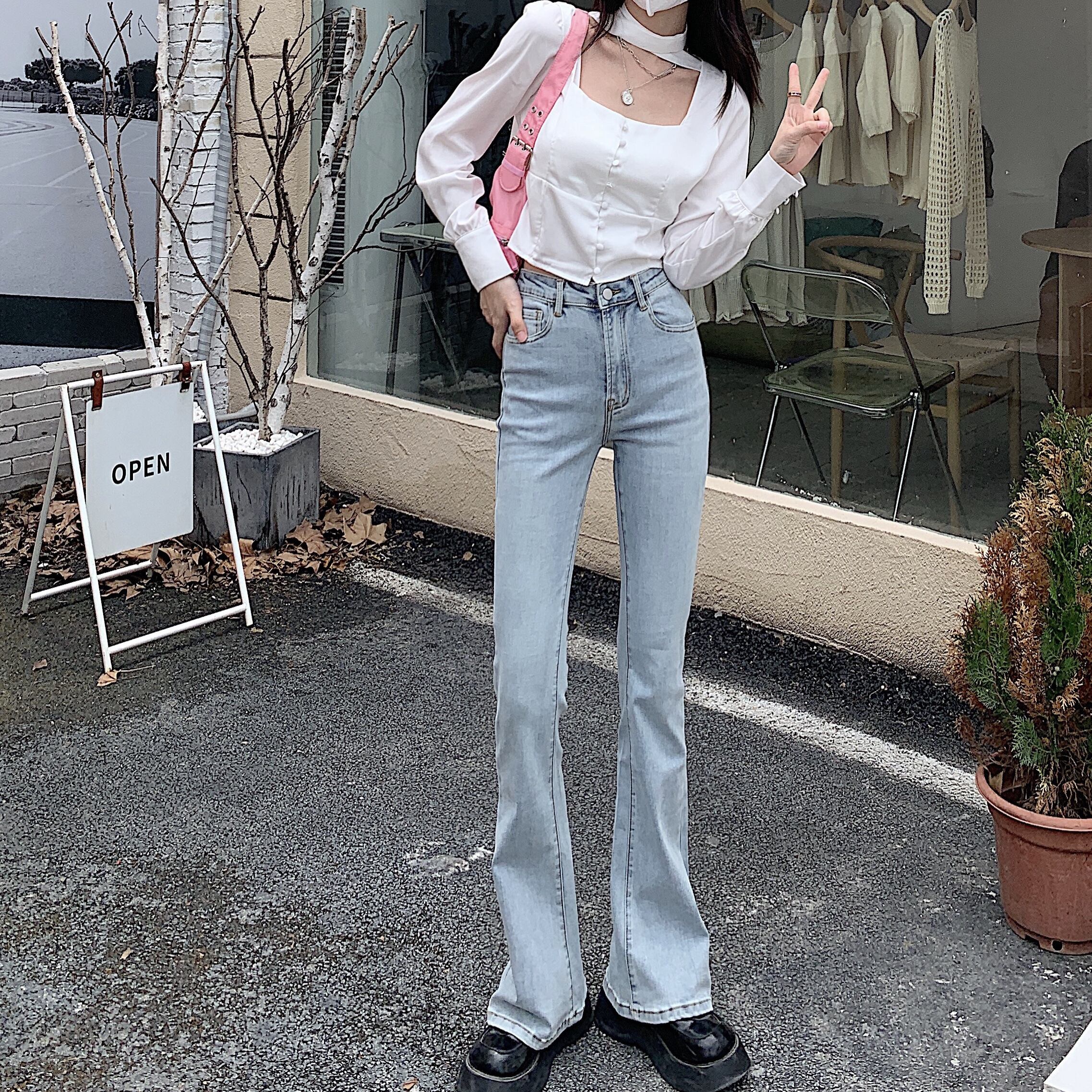 スタンダード韓国ファッションパンツ NEWストレッチハイウェストウェストレディース レトロ エラスティック 伸縮 スタイル ウエスト GroundMODE298528602480 | pleglad Ground