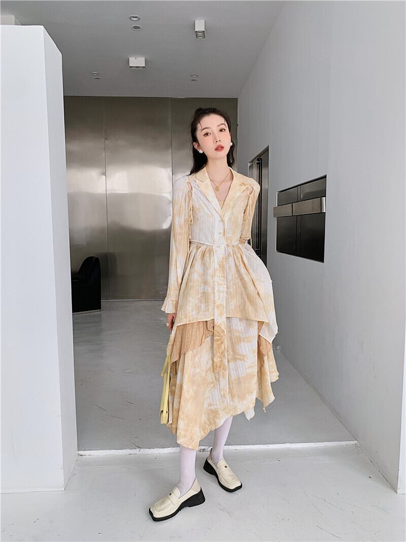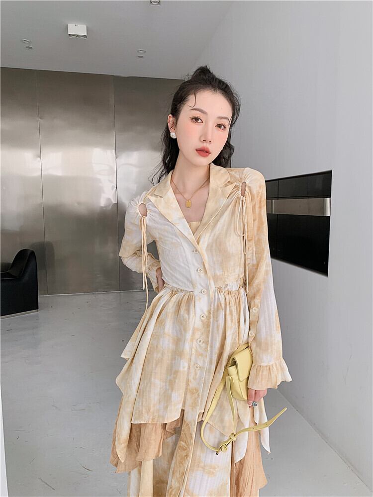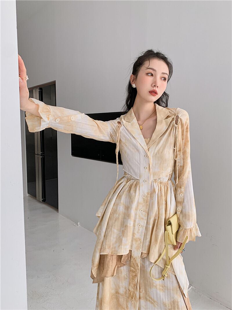 色:枯れた葉の色のスーツの襟のトップ,スカート,チューブトップ